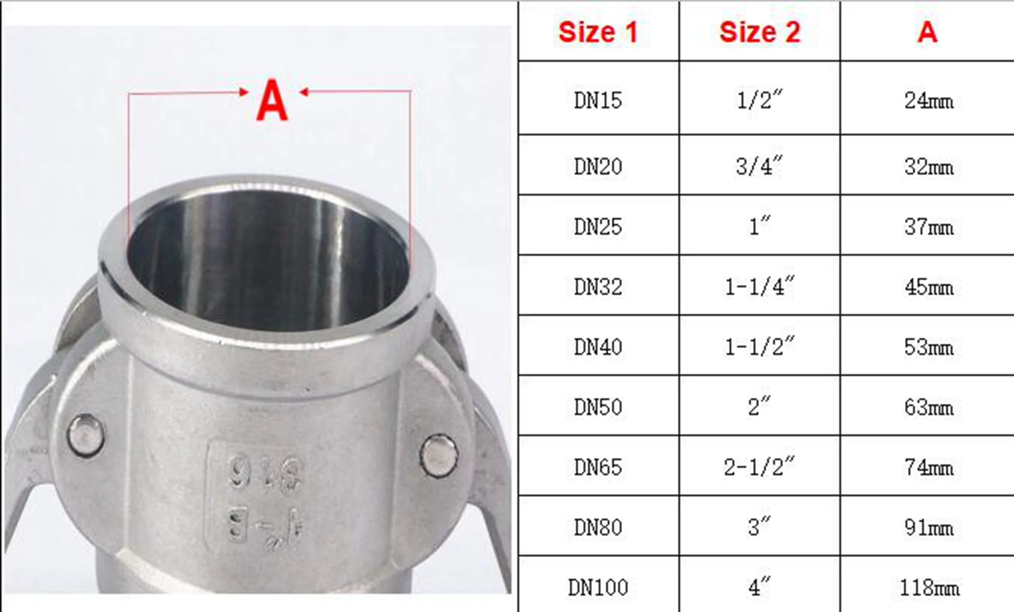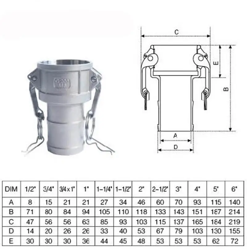 Хвостовой стержень для шланга 12 дюйма, 1-34 дюйма, 1-14 дюйма, 1-12 дюйма, 2-12 дюйма, 3 дюйма, гнездо типа C из нержавеющей стали 304, фитинг Camlock, канавка