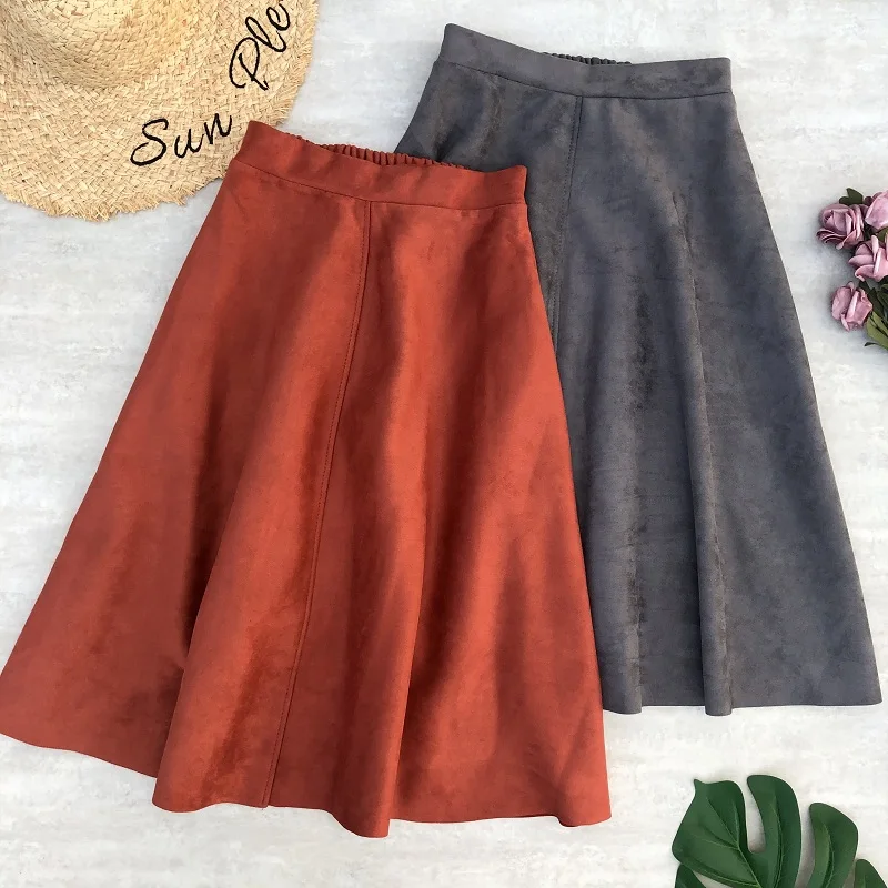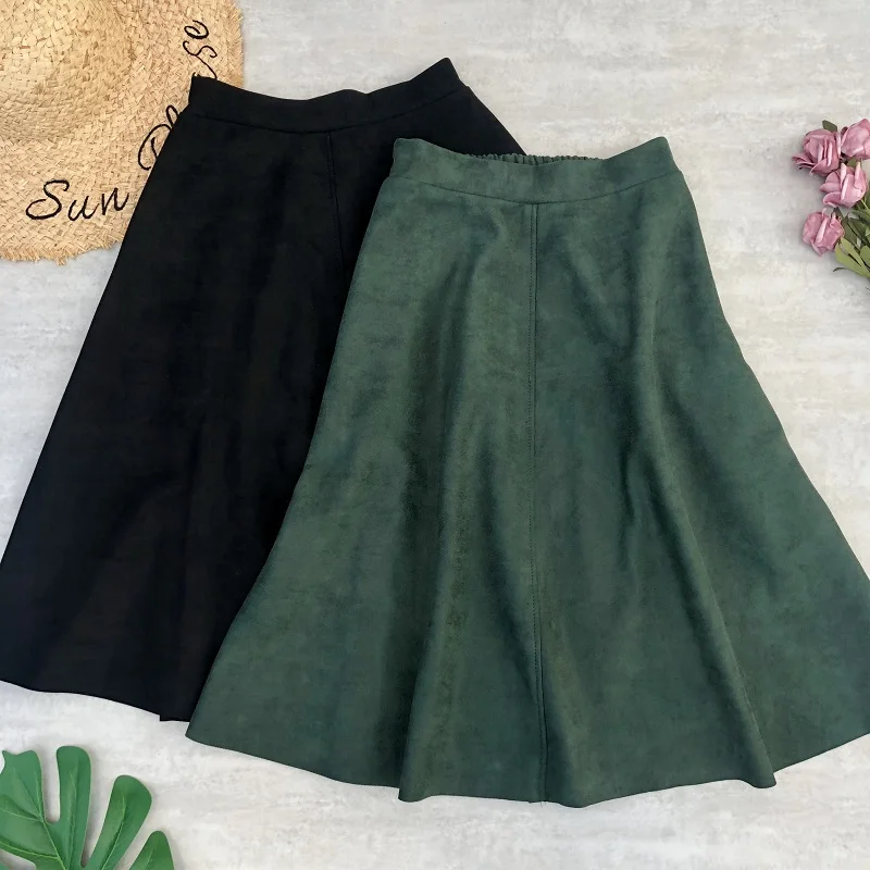 Женская замшевая Юбка-миди Neophil с высокой талией 2022, зимняя эластичная Женская трапециевидная юбка в винтажном стиле, черная, зеленая расклешенная модная юбка S29A4