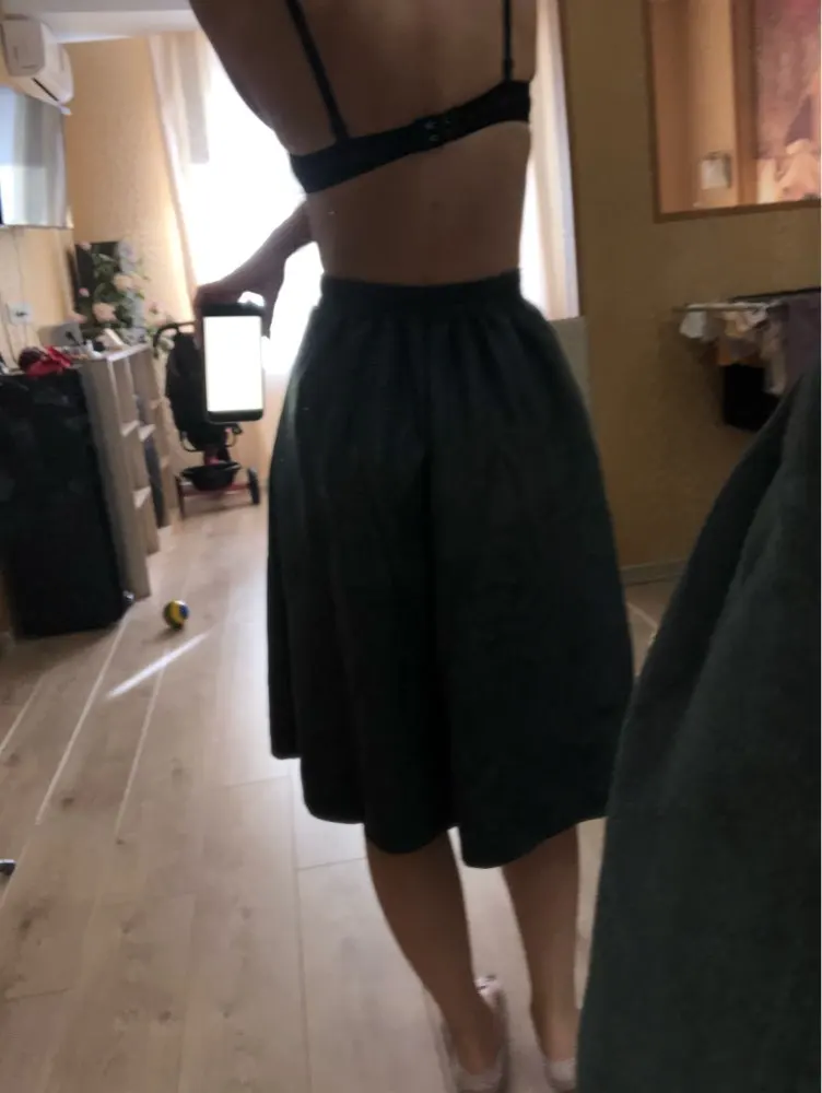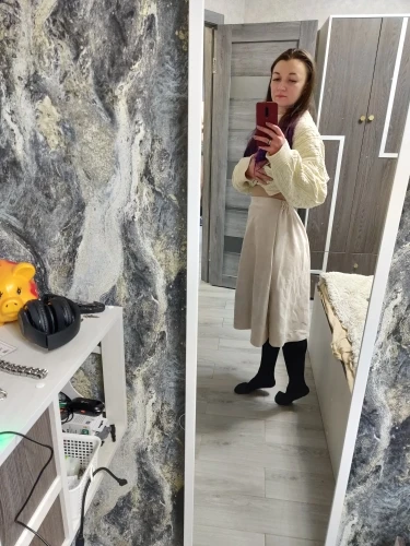Юбка красивая, средне-серого цвета. Пришла быстро. На талию 75 см подошла хорошо, т.к. сзади есть резинка в поясе. Минусом есть то, что не обработаны припуски швов с изнанки и низ юбки. Понятно, что ткань не осыпается, но необработанные швы все же выглядят неряшливо. Отнесу в ателье, чтобы оверлочили. А так без претензий, сидит нормально.