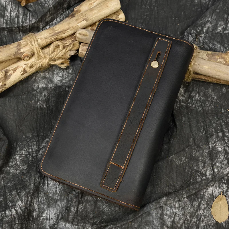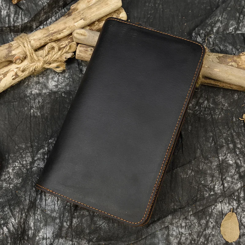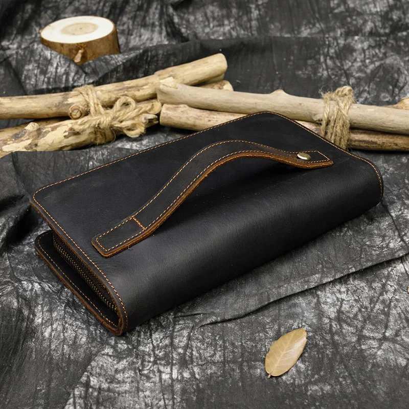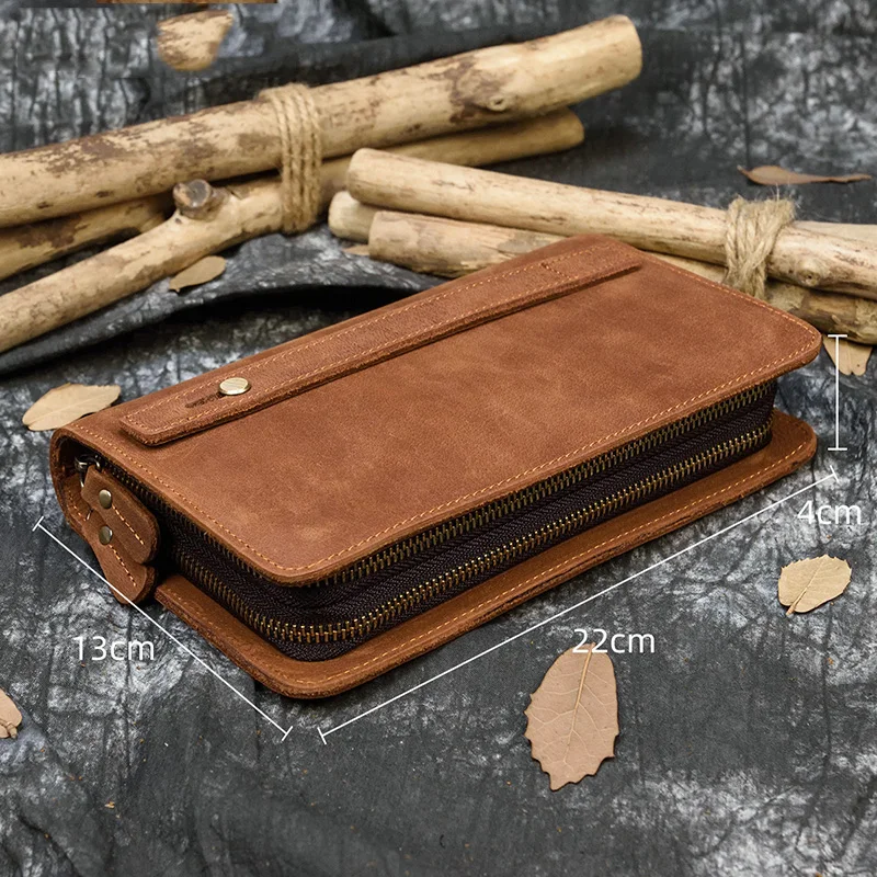 Мужской Длинный кошелек crazy horse с двойной молнией, кожаный боль...