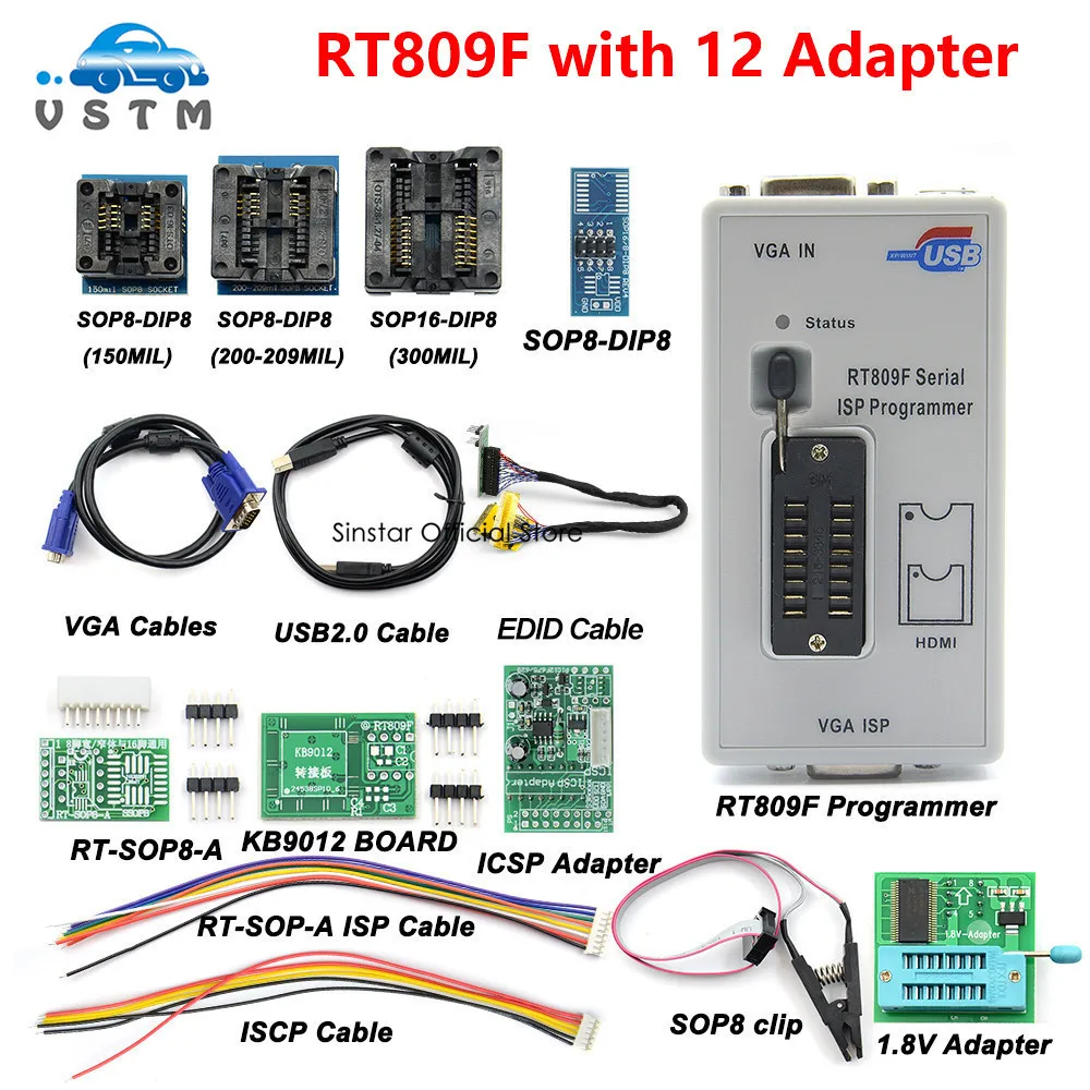 RT809F серийный ISP программатор с 12 адаптерами + адаптер 1,8 в + ...