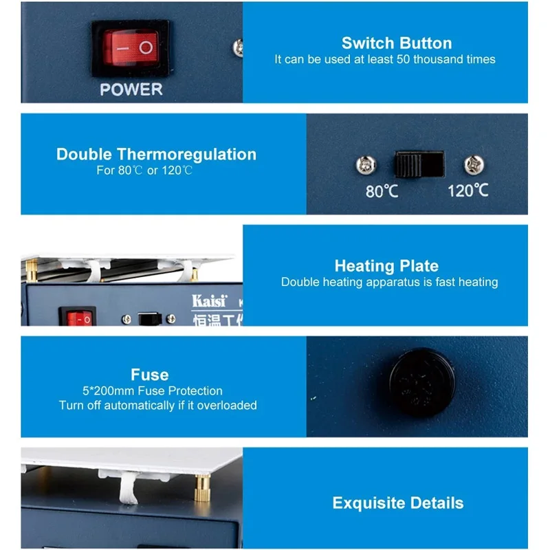 · 80 градусов Цельсия особенно подходит для разогрева коллосола ЖК-экрана телефона. · 120 градусов Цельсия особенно подходит для разогрева материнской платы постоянно.