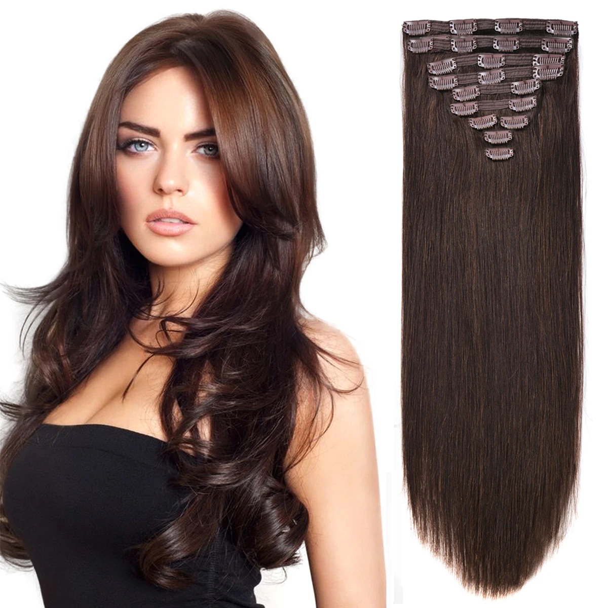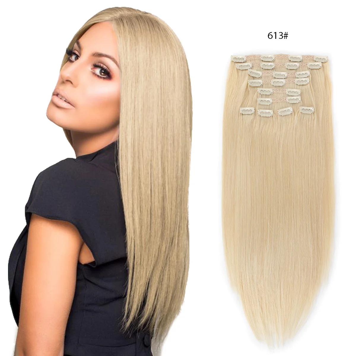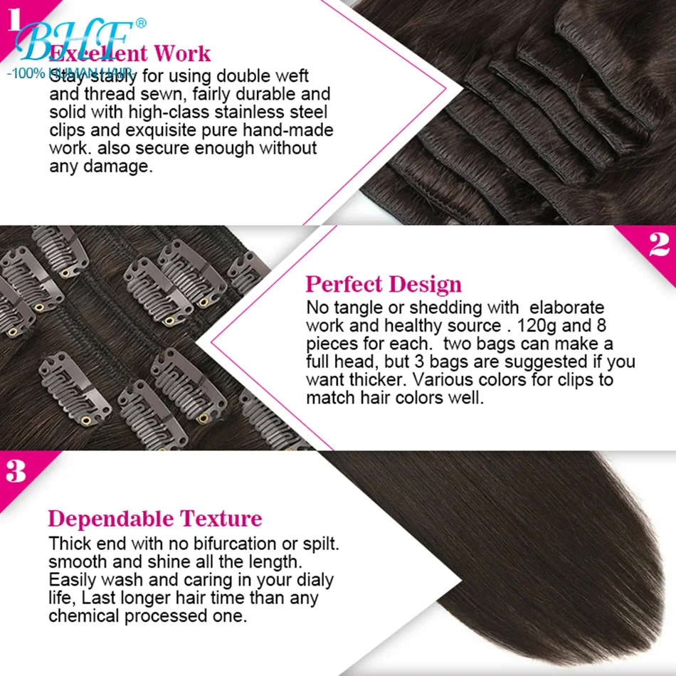Человеческие волосы для наращивания BHF на зажимах, 100% прямые натуральные человеческие волосы Реми, полная голова, от 70 г до 140 г на зажимах