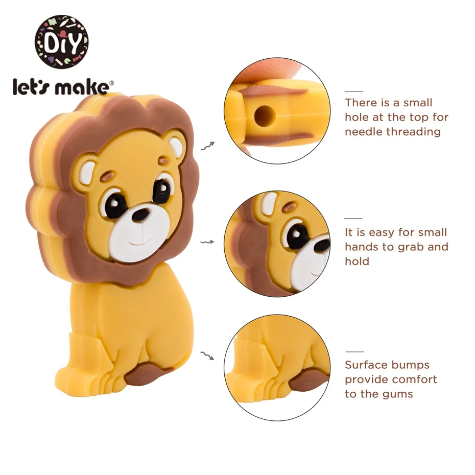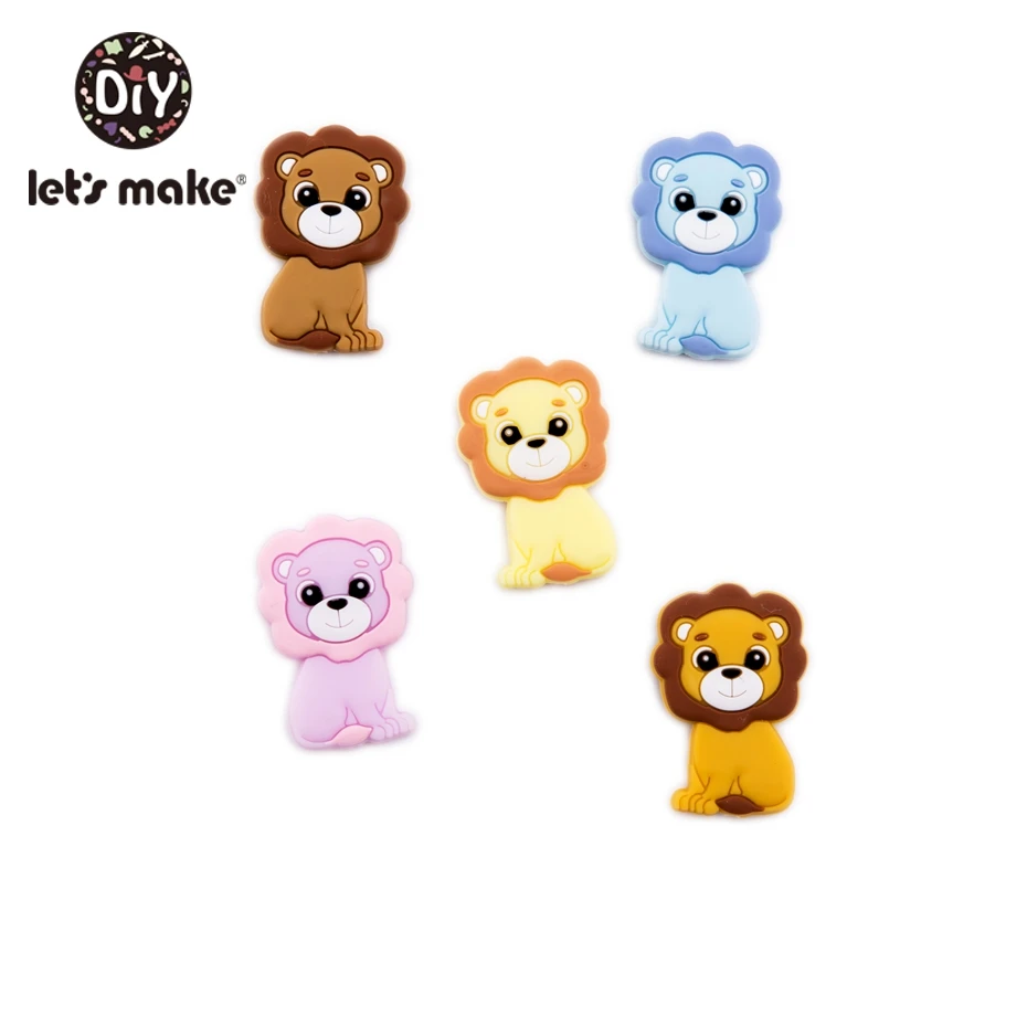 5 шт. силиконовые шарики для прорезывания зубов, детские игрушки для прорезывания зубов с мультяшным львом, аксессуары для самостоятельного изготовления детских зубов