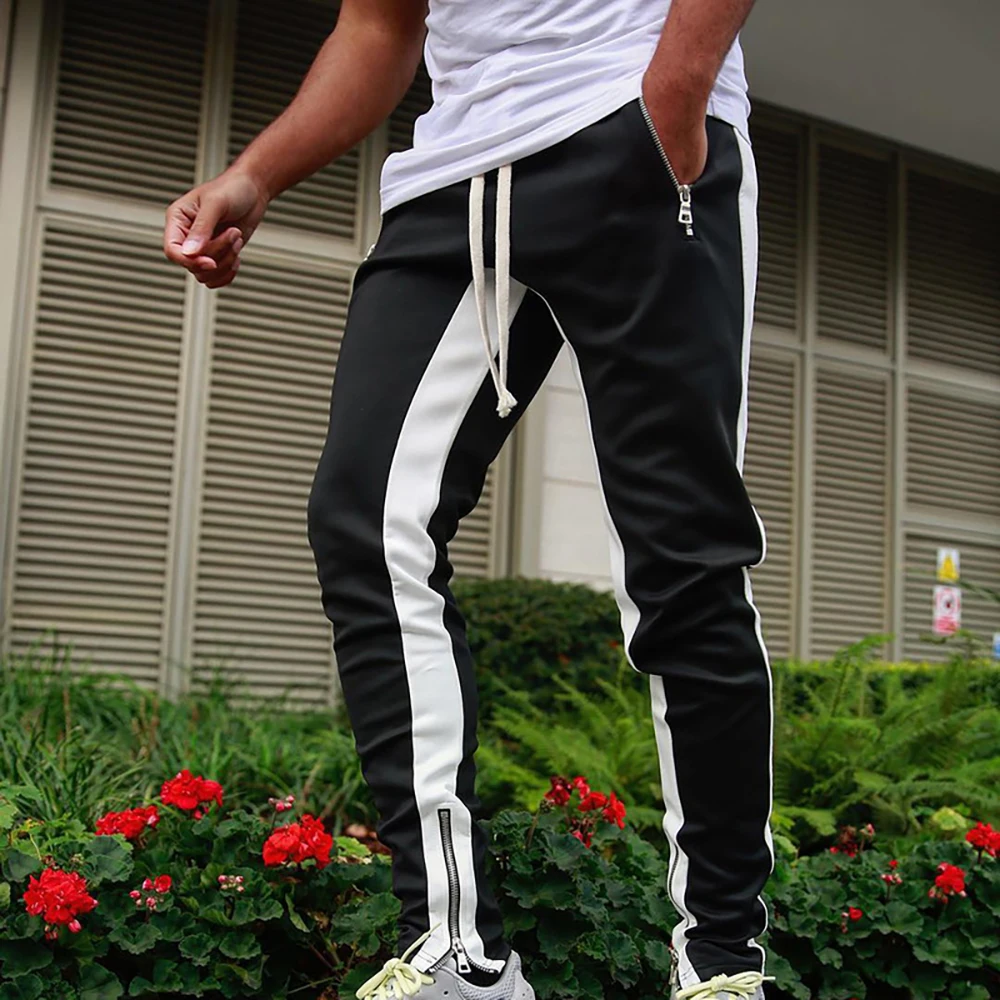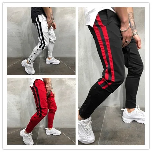 2019 Модные мужские свободные спортивные штаны для бега, спортивные штаны, повседневные мужские брюки с карманами, боковые полосы, штаны в стиле хип-хоп, спортивные штаны
