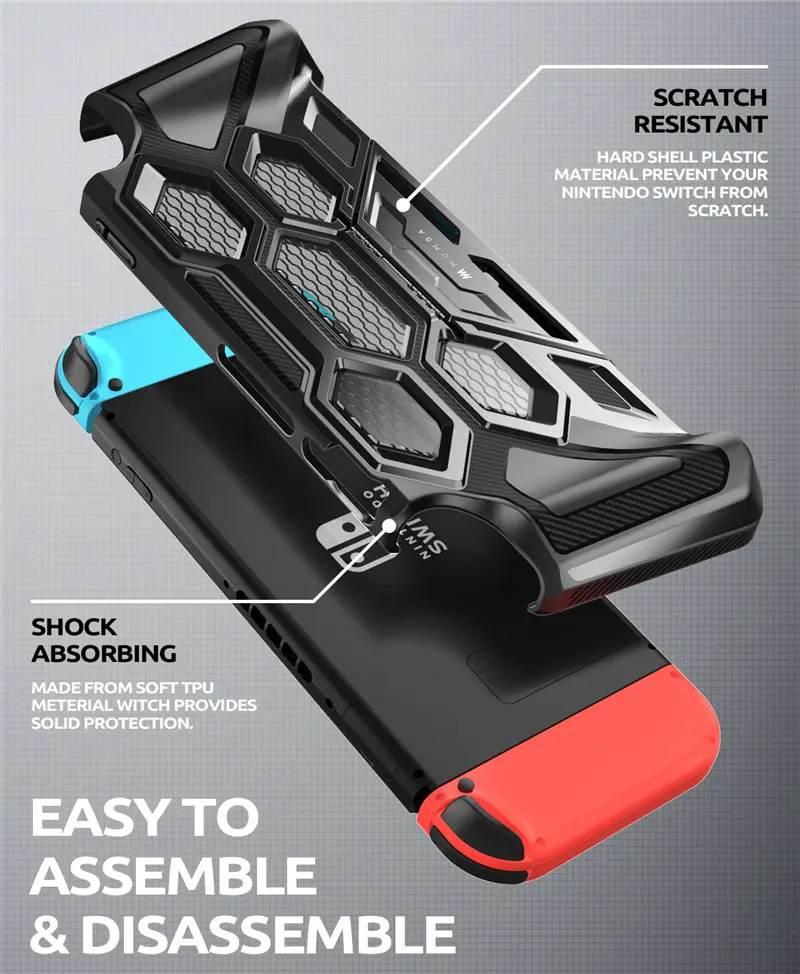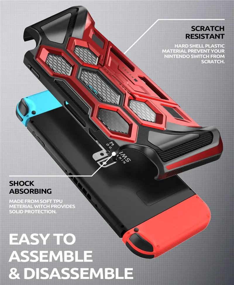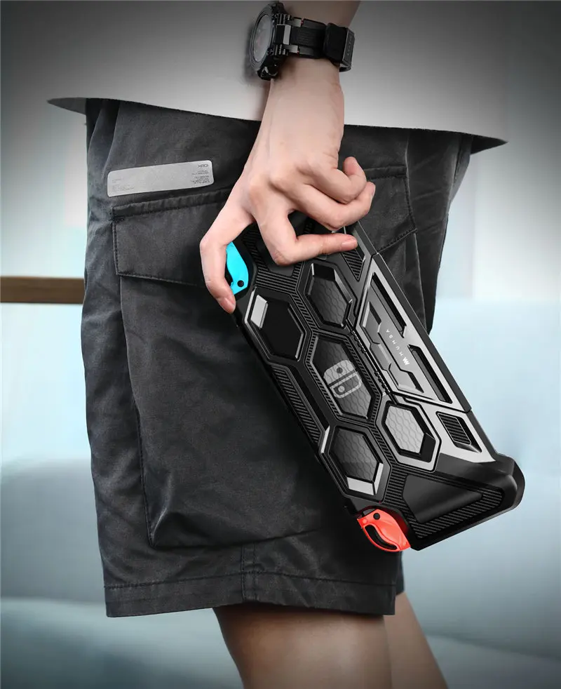 Чехол Mumba Battle-прочная защита всего корпусаДля Nintendo SwitchЧехол Mumba Nintendo Switch Battle, созданный из амортизирующих, гибких материалов ТПУ и поликарбоната, удерживает вашу Nintendo Switch в игре. Гибите свои игровые мышцы и наслаждайтесь лучшей в отрасли защитой от ударов, царапин, падений или падений, благодаря уникальному дизайну чехла и встроенной подставке для просмотра без использования рук.