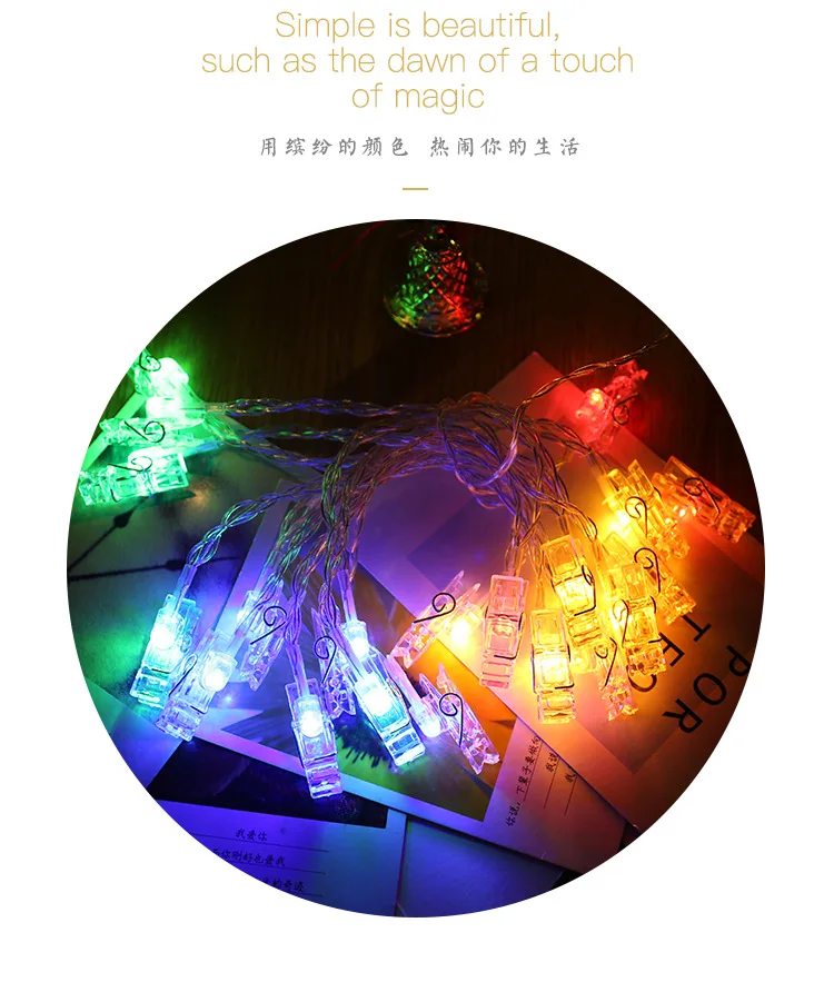 Светодиодная гирлянда с 10 лампами и зажимом для фотографий, бокс с аккумулятором, Светодиодная лента светильник свадебное украшение для дома, праздничное украшение для детского праздника, 1,5 м