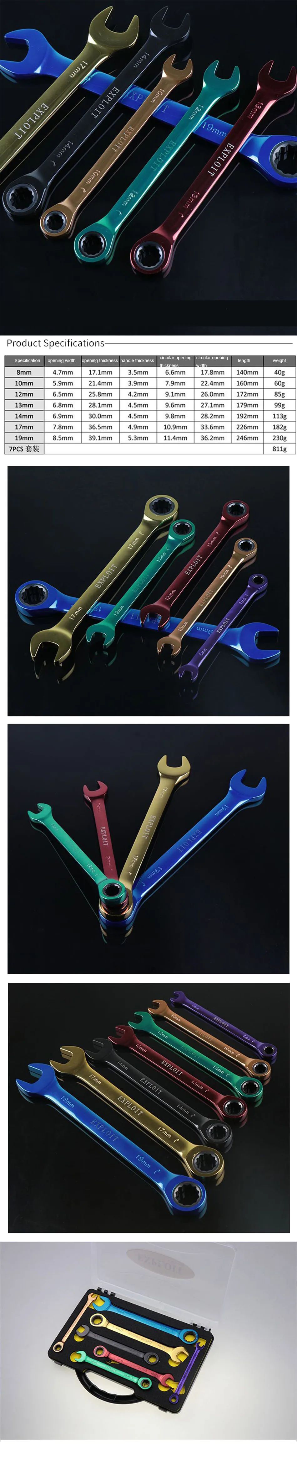 Гаечный ключ с храповым механизмом, 7 шт., многофункциональный, двухцелевой, Открытый подвижный ключ, набор ручных инструментов, двусторонний, из хромованадиевой стали Std