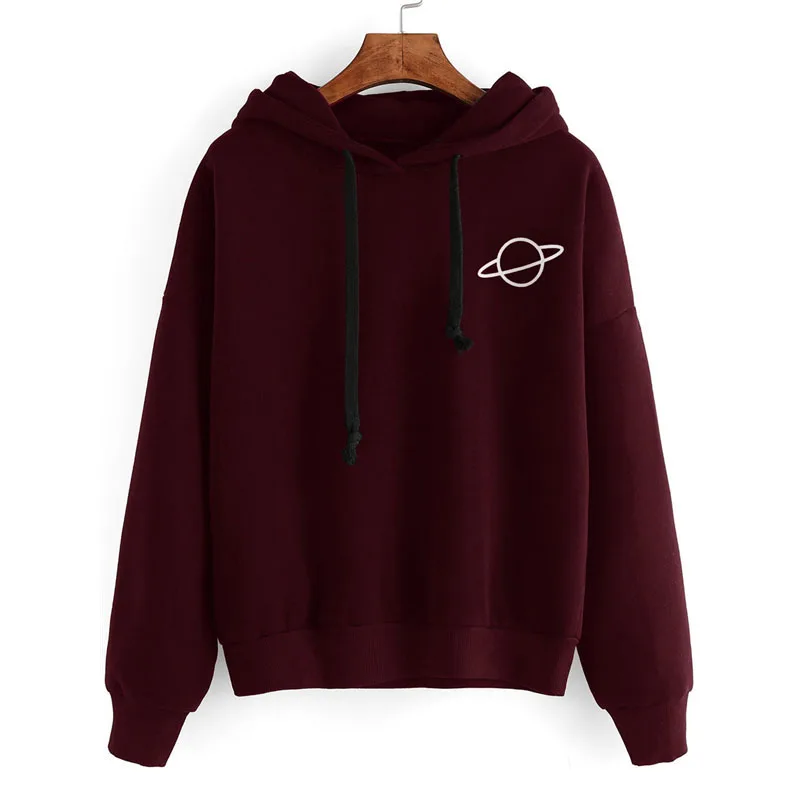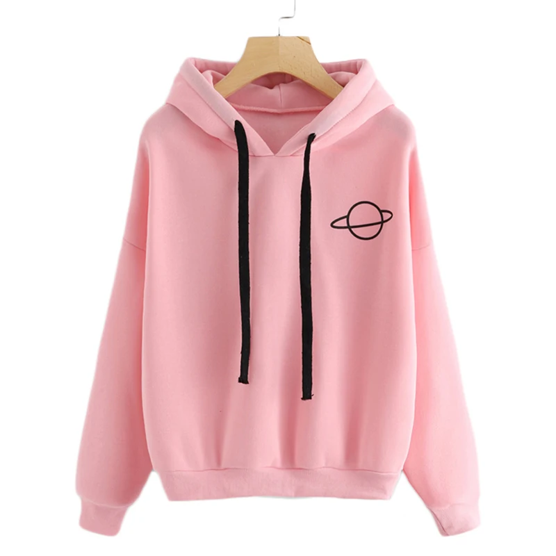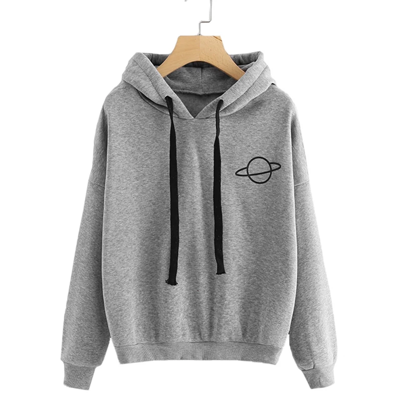 Толстовки в стиле Харадзюку, пуловер, Женские однотонные Топы с капюшоном в стиле K-POP, Женский свитшот с принтом планеты, зимняя повседневная спортивная одежда