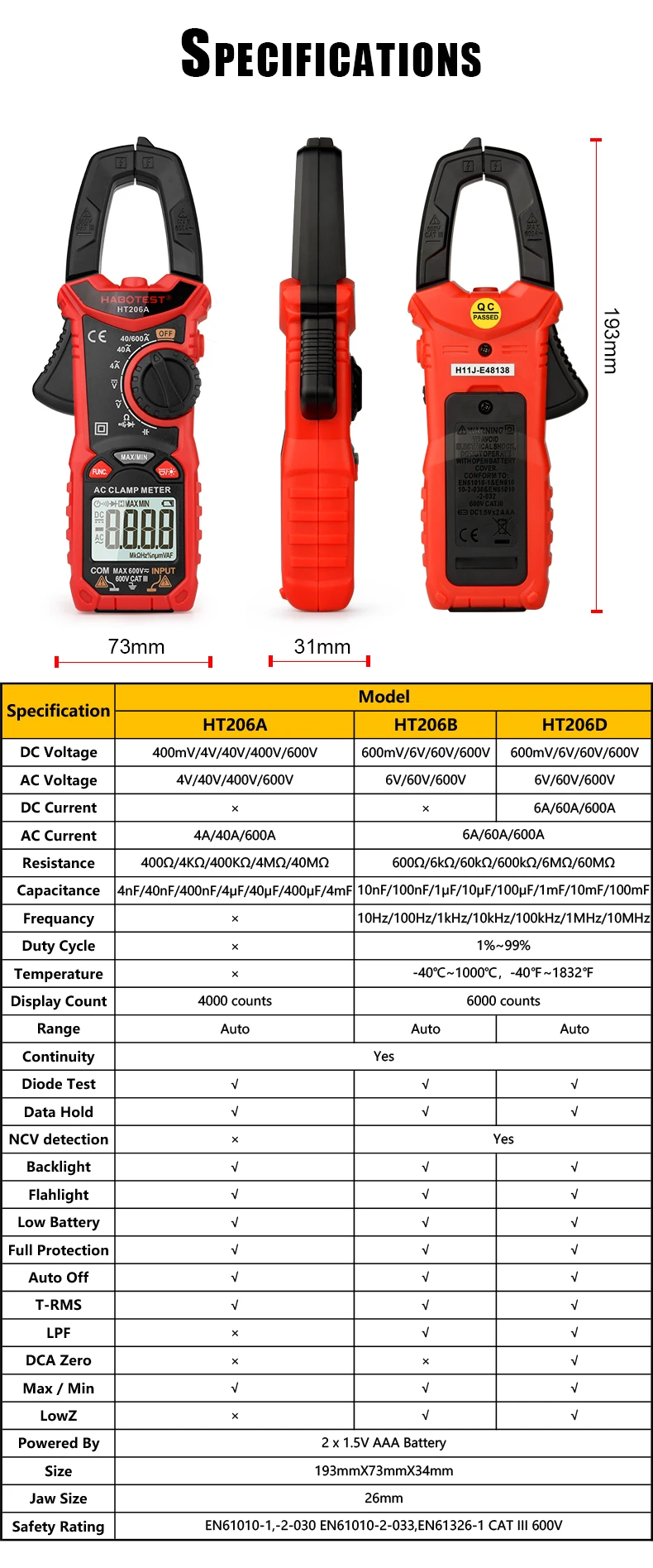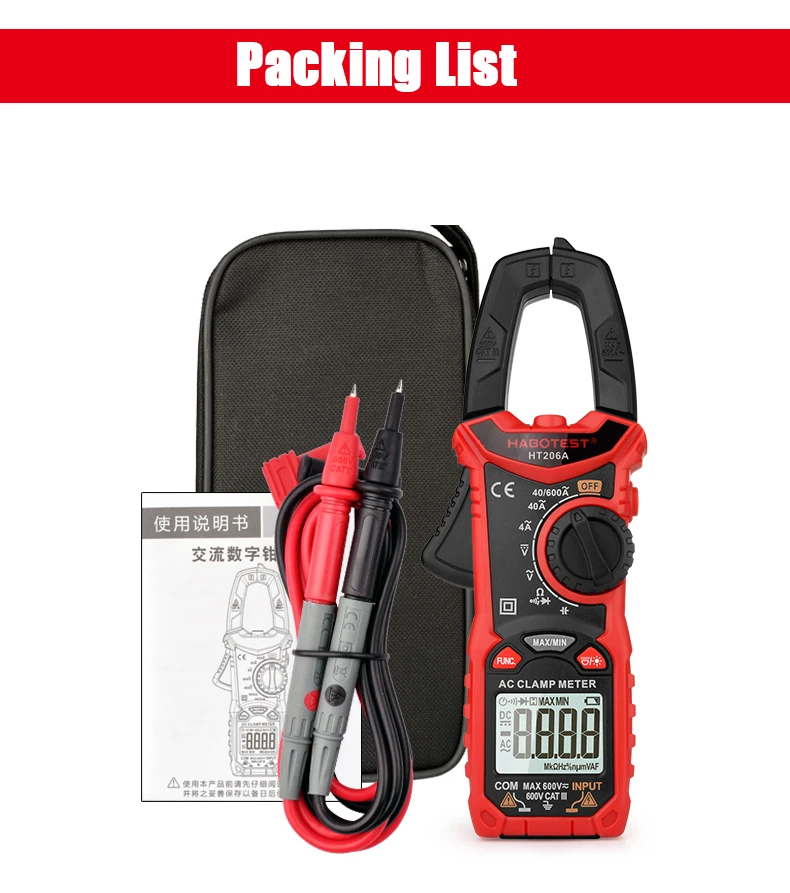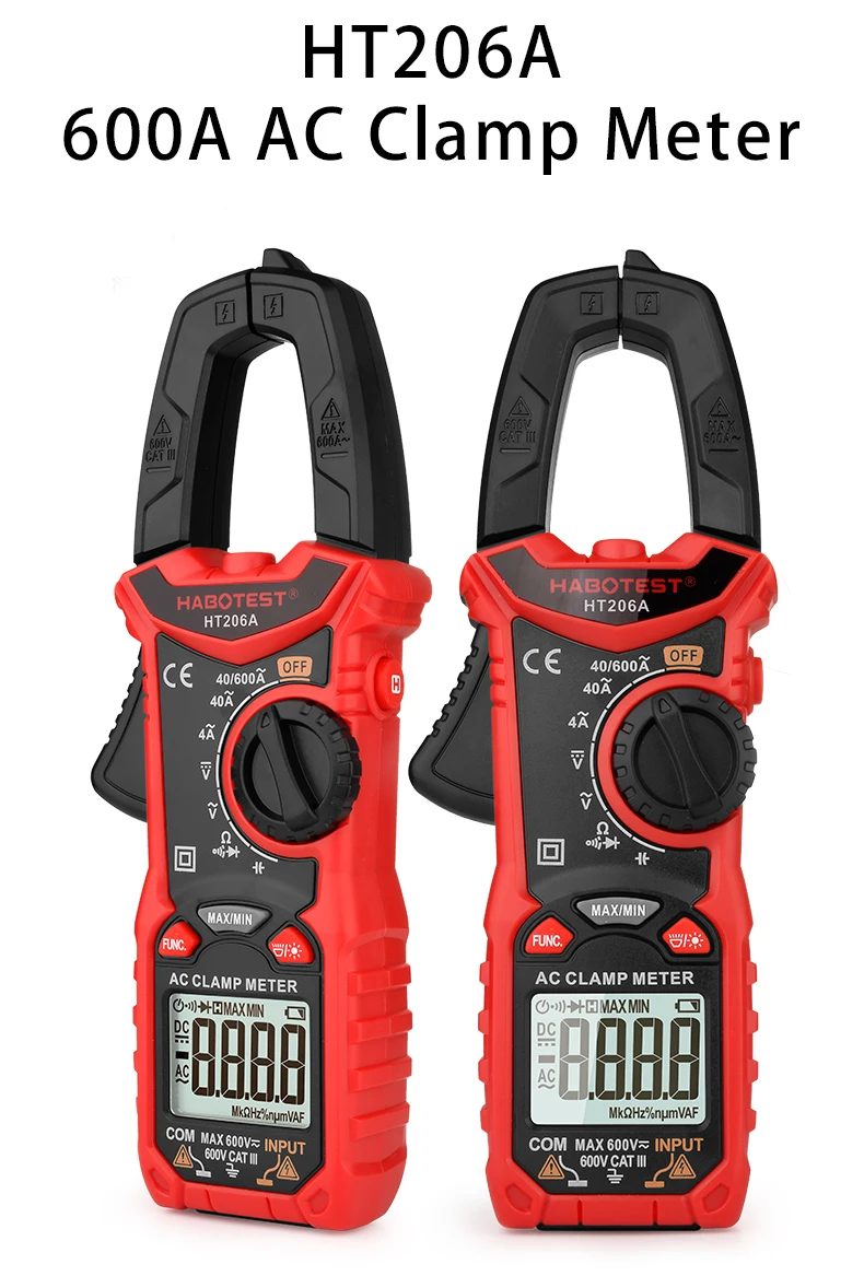 Цифровой мультиметр-зажим HT206A, 600 В, 600 А, 4000 отсчетов, AC