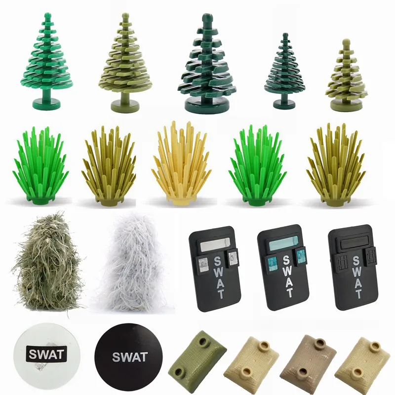 Блокировка Военная WW2 щит трава сосна песчаная сумка Модель MOC строительные блоки игрушки для детей сборка Военная искусственная