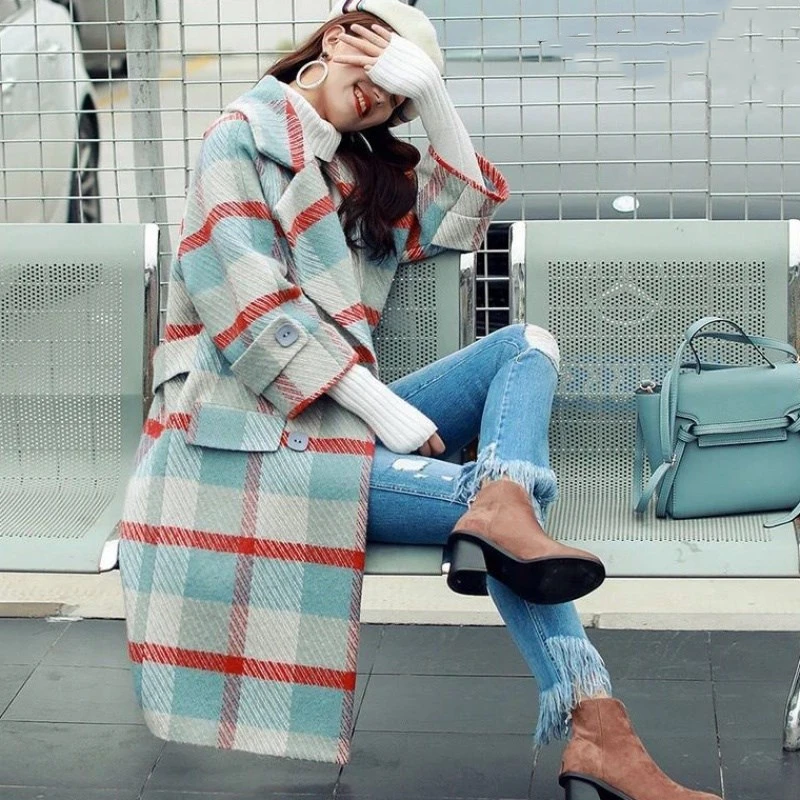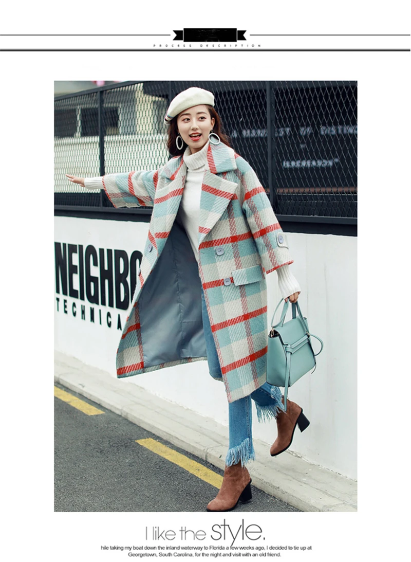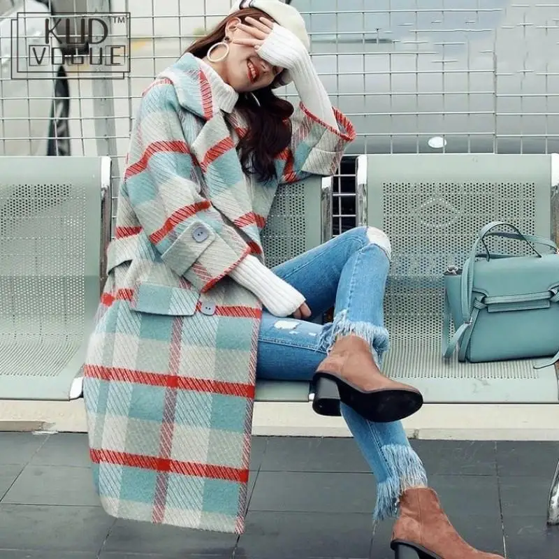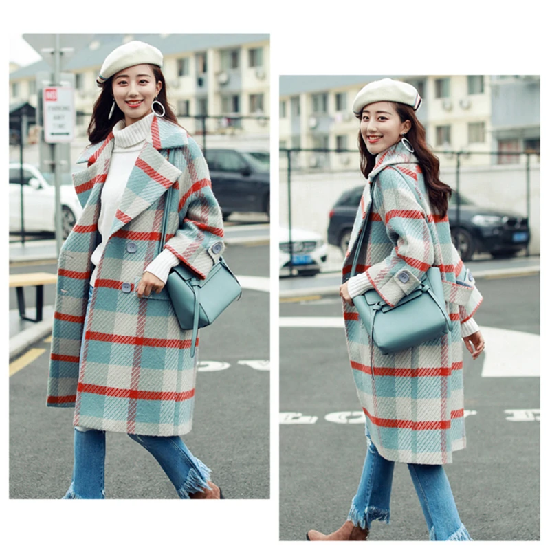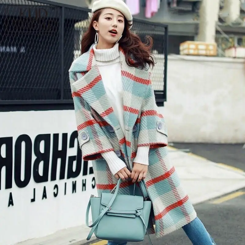 Куртка женская осенне-зимняя, клетчатое пальто с лацканами, размера плюс г., свободная, теплая, длинная, повседневная, 2021