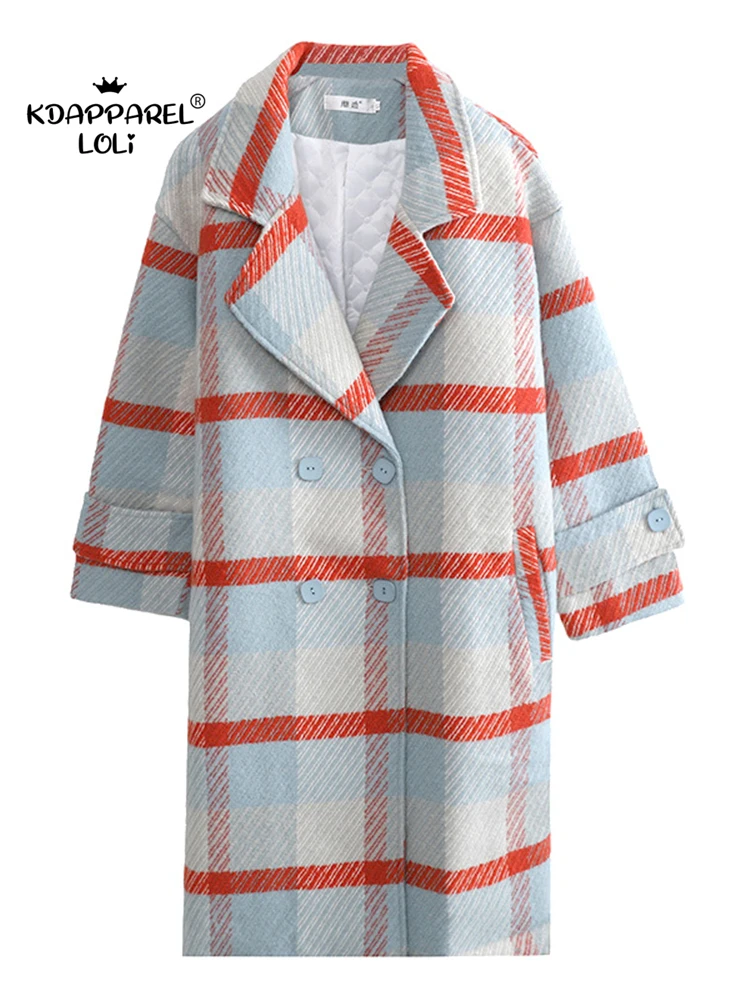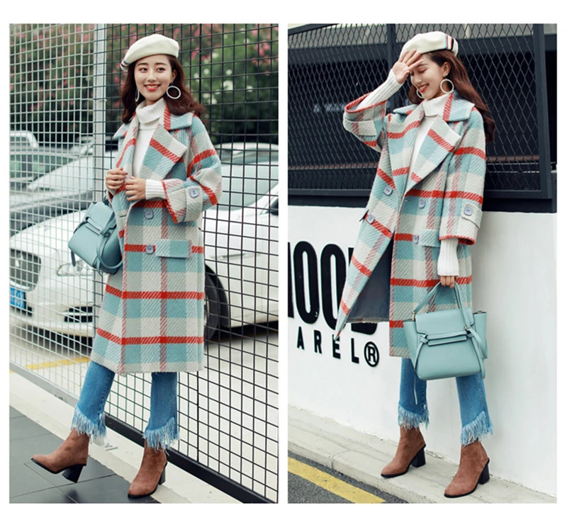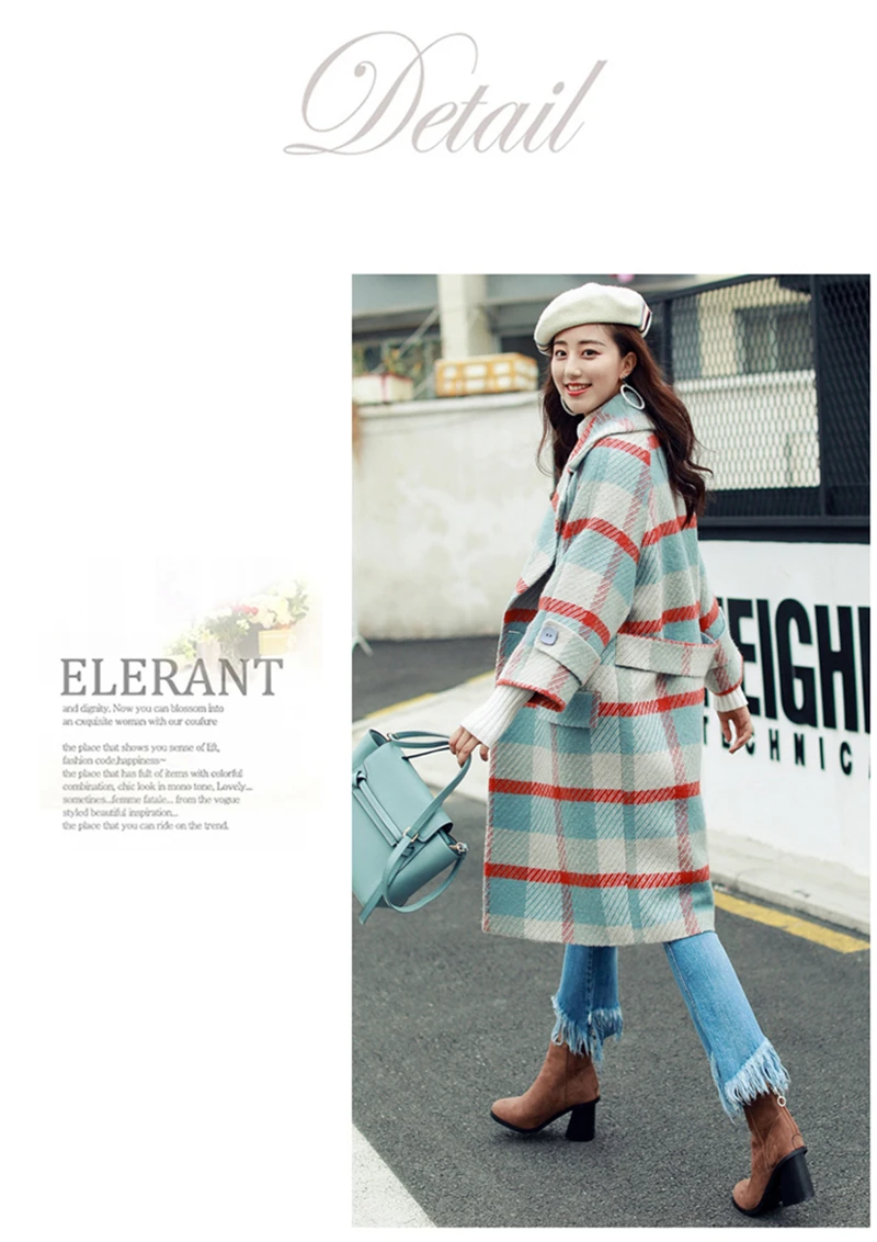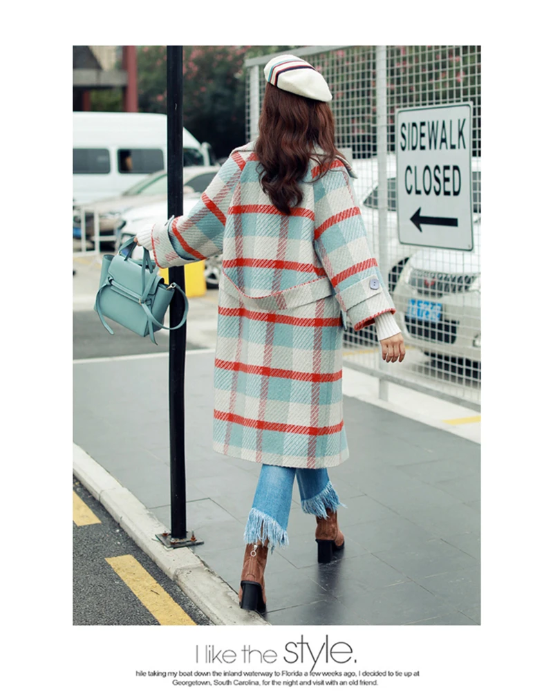 Куртка женская осенне-зимняя, клетчатое пальто с лацканами, размера плюс г., свободная, теплая, длинная, повседневная, 2021