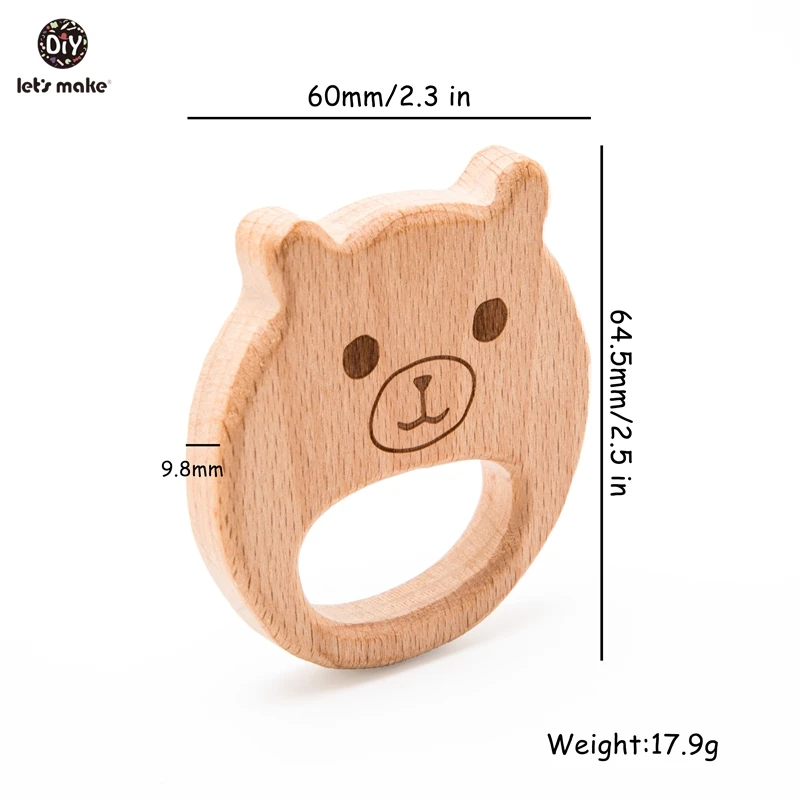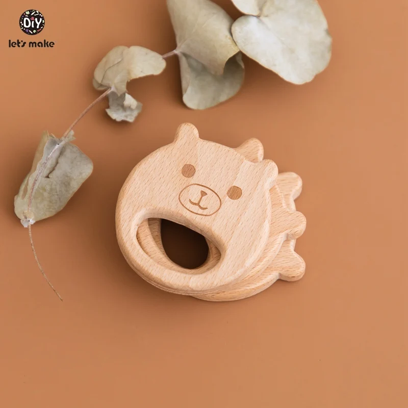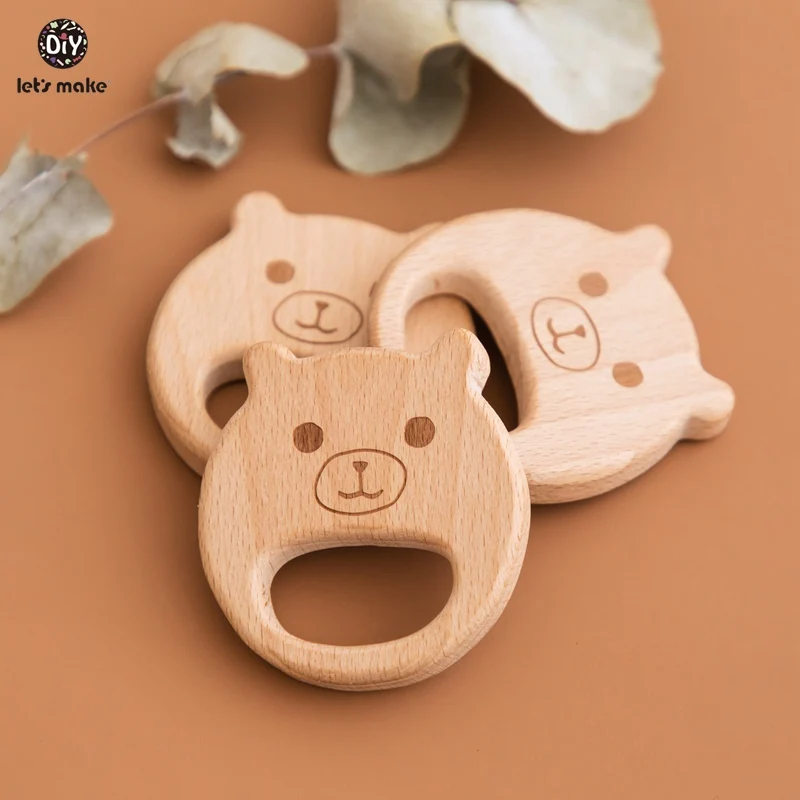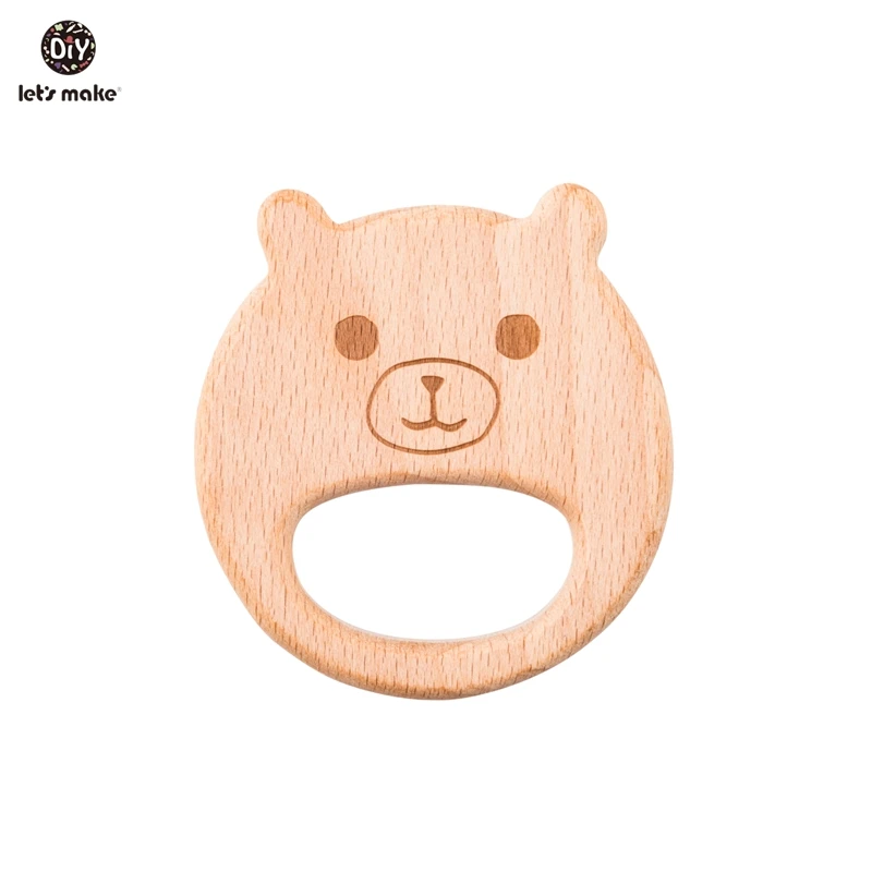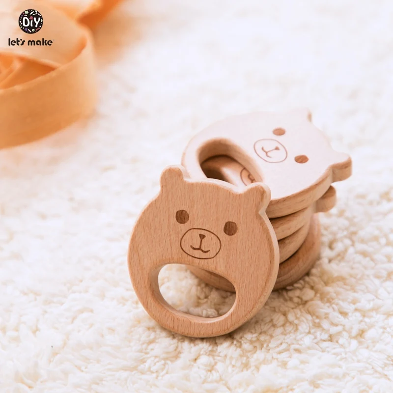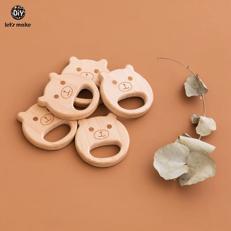 Деревянные Прорезыватели для зубов Let's Make, Буковые животные, в форме медведя, не содержит бисфенола А, деревянные игрушки для прорезывания зубов, сделай сам, ожерелье, Прорезыватель для зубов для детей, 10 шт.