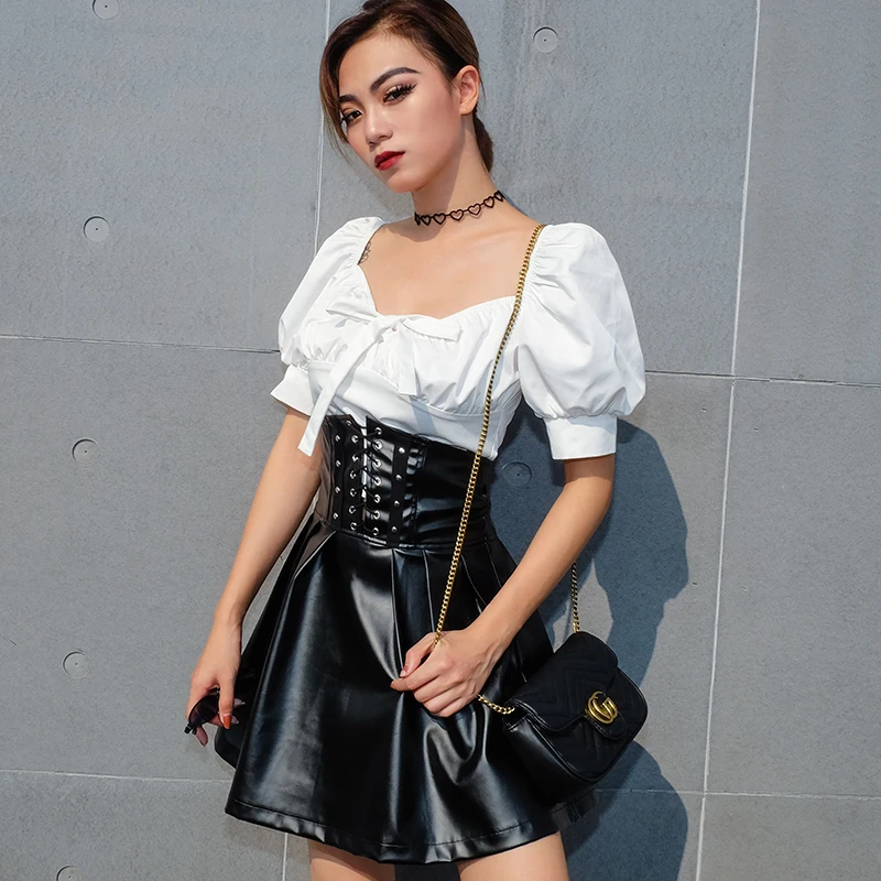Готический плиссированный корсет на шнуровке, Мини-Юбка Для Женщин,...