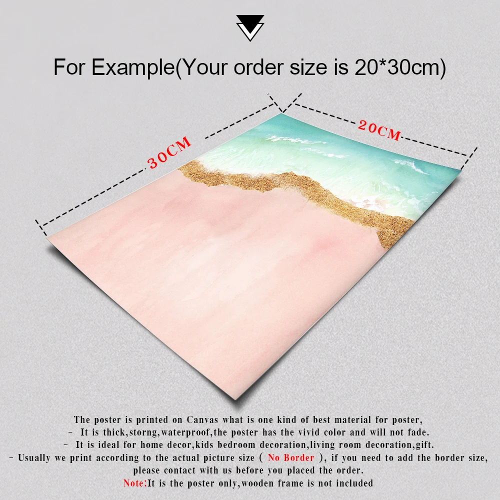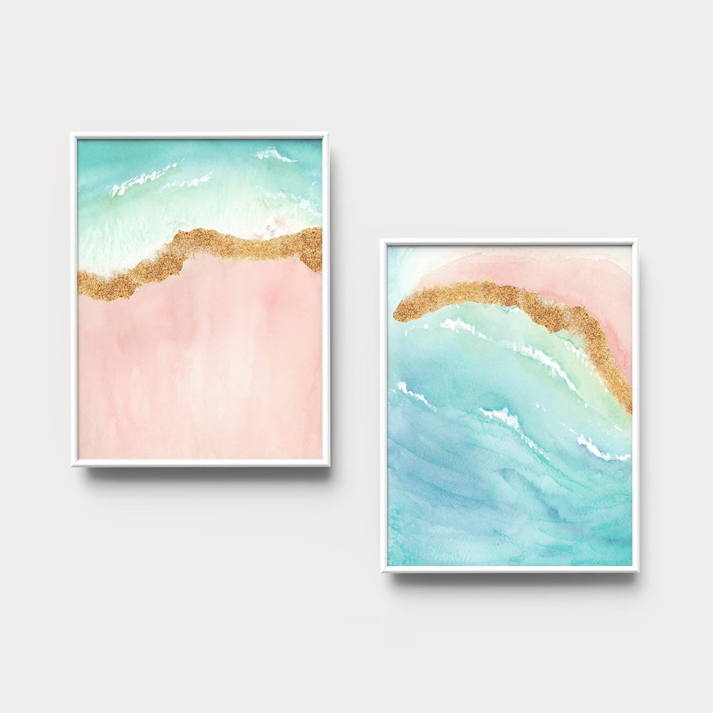 Абстрактный акварельный пляж Искусство розовый бирюза Золотой океан большой постер Холст Искусство пейзаж Живопись стены картины для гостиной