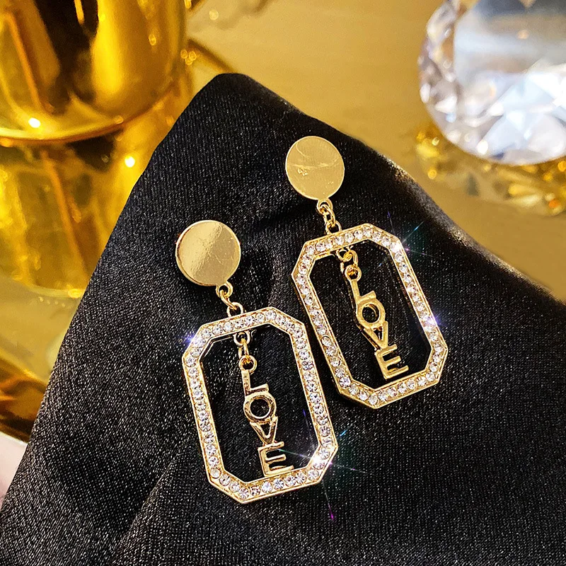 Новые женские длинные серьги-гвоздики с кристаллами, серьги-подвески с буквами, сексуальные женские ювелирные аксессуары, милые модные украшения для диких ушей