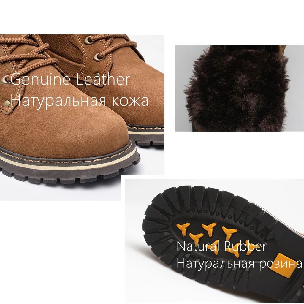 Зимняя обувь из кожи с натуральным лицевым покрытием; Мужские теплые зимние ботинки ручной работы; Размеры 38-50; Мужская обувь; #8988