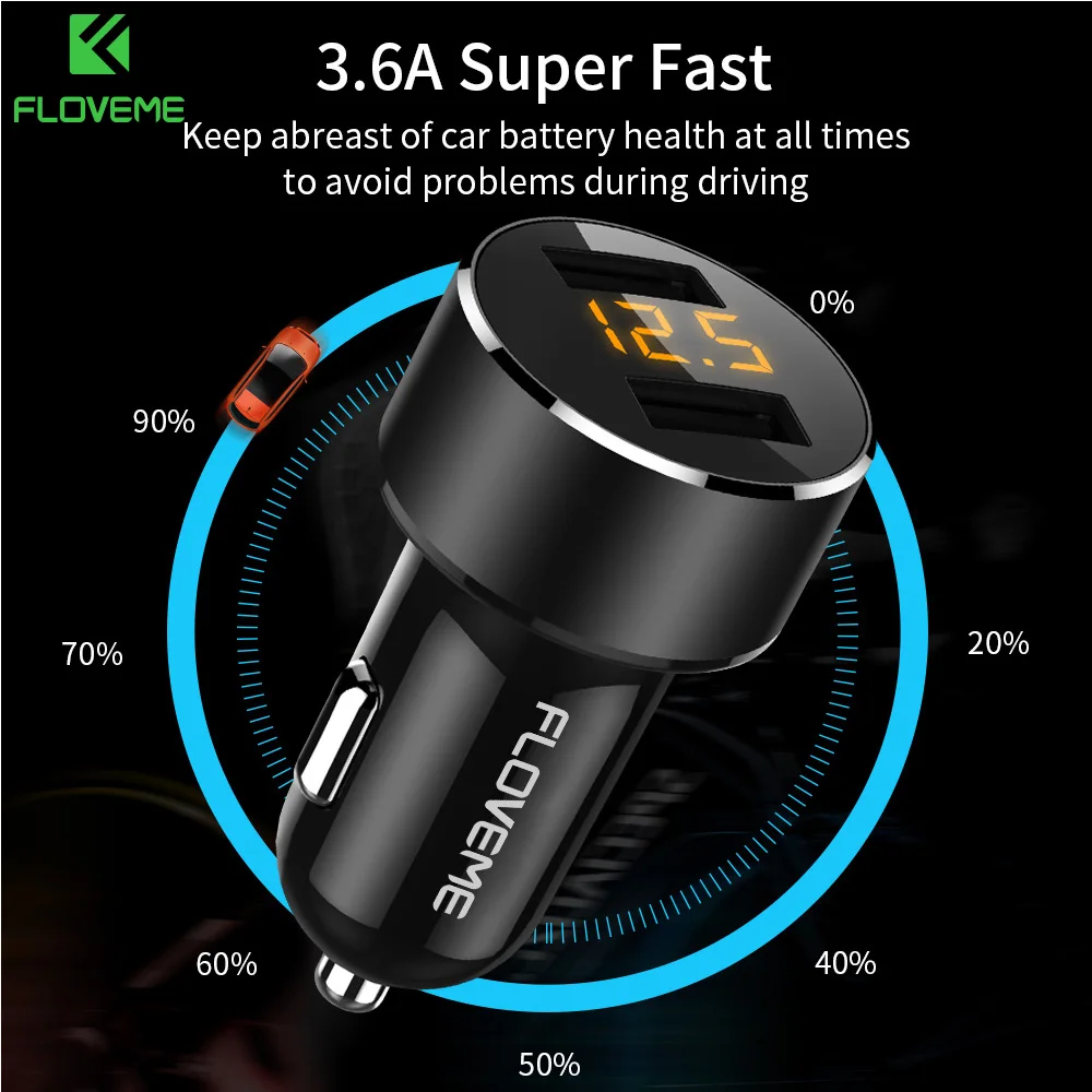FLOVEME Универсальный светодиодный Автомобильный USB Chager с двумя портами