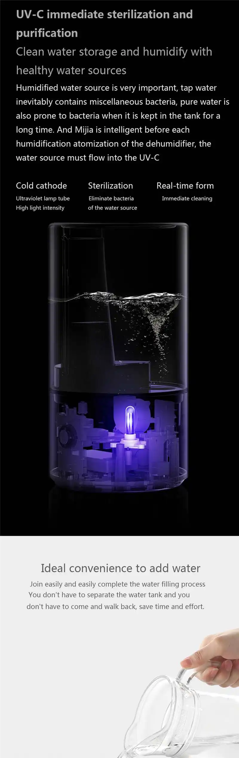 Описание: [UV-C мгновенной стерилизации] [Портативный дизайн воды] [Запатентованный бесшумный электрический клапан] [Постоянная здоровая влажность] [Приложение и Голосовое управление Romote] необходимо использовать в соответствии с приложением XIAOMIAI или загрузить приложение Mjia