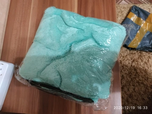 Заказывал 2шт, любим машину мыть сами. До Томска дошло через 3 недели. Запаковано хорошо, полотенце больше чем думал 40*40см, прямо плотное и толстое, наверное ведро воды впитывает ), ещё не проверял в деле.