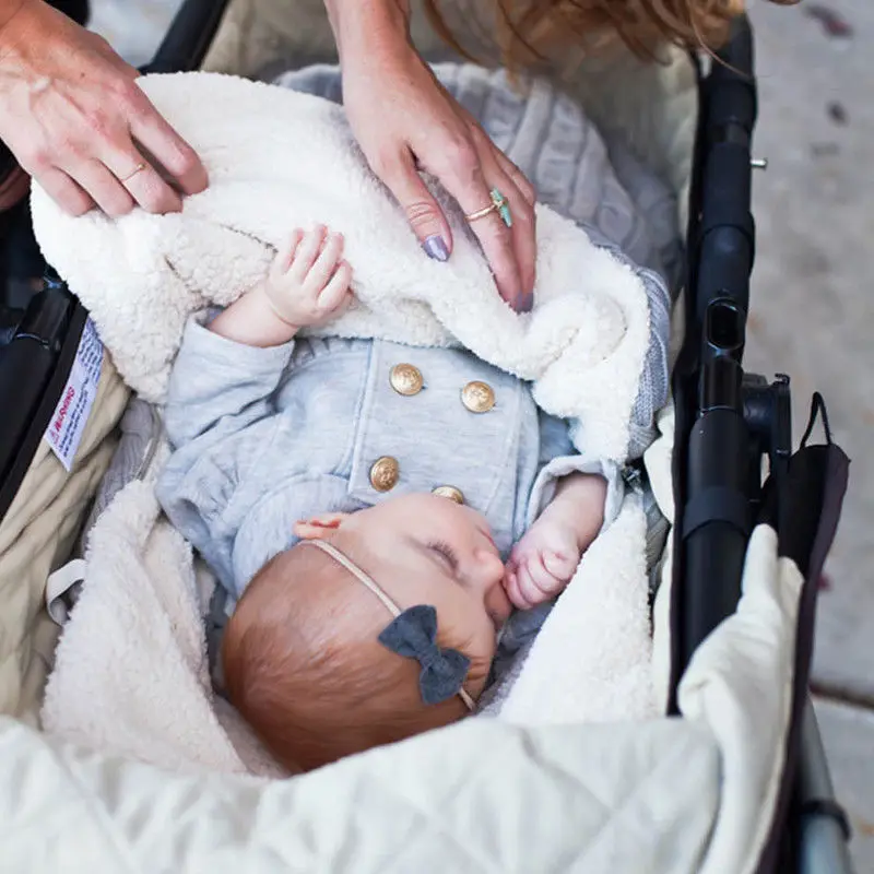 Зимнее одеяло для новорожденных на коляску, теплый вязаный крючком спальный мешок для маленьких детей