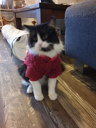 Моему кошке 6 месяцев. Он немного свободный, но он еще не полностью Взрослый кот, поэтому я специально заказал средний размер, чтобы он все еще мог поместиться в него, как только он станет больше.