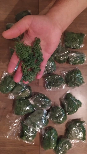 До этого заказывал малый объём (по 20 граммов) цвет соврал 1 в 1, но почему то в этот раз мох высыхал и становился жестким (