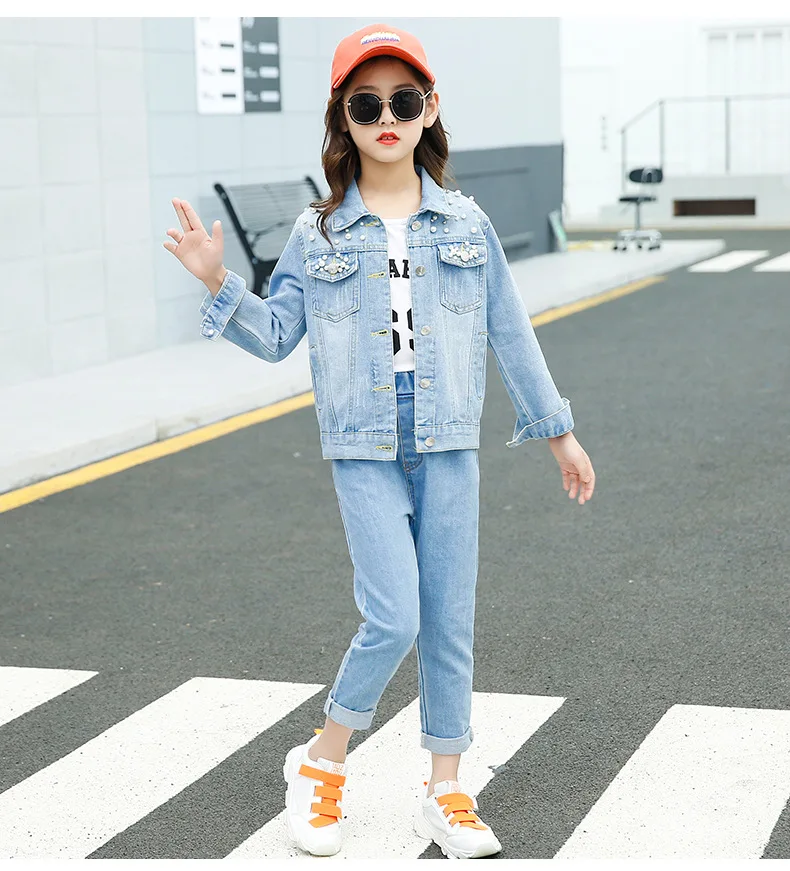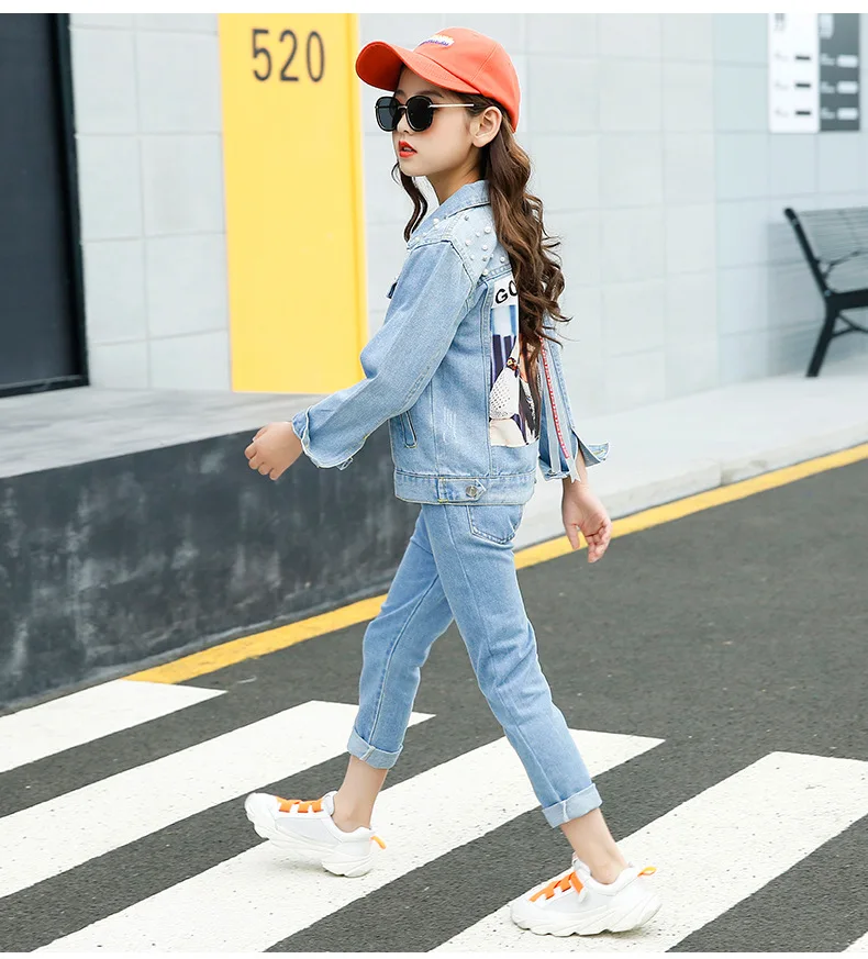 Осенняя джинсовая куртка для девочек, пальто для девочек, детская верхняя одежда, пальто для девочек, детская джинсовая куртка, 3, 4, 5, 6, 7, 8, 9, 10, 11, 12 лет