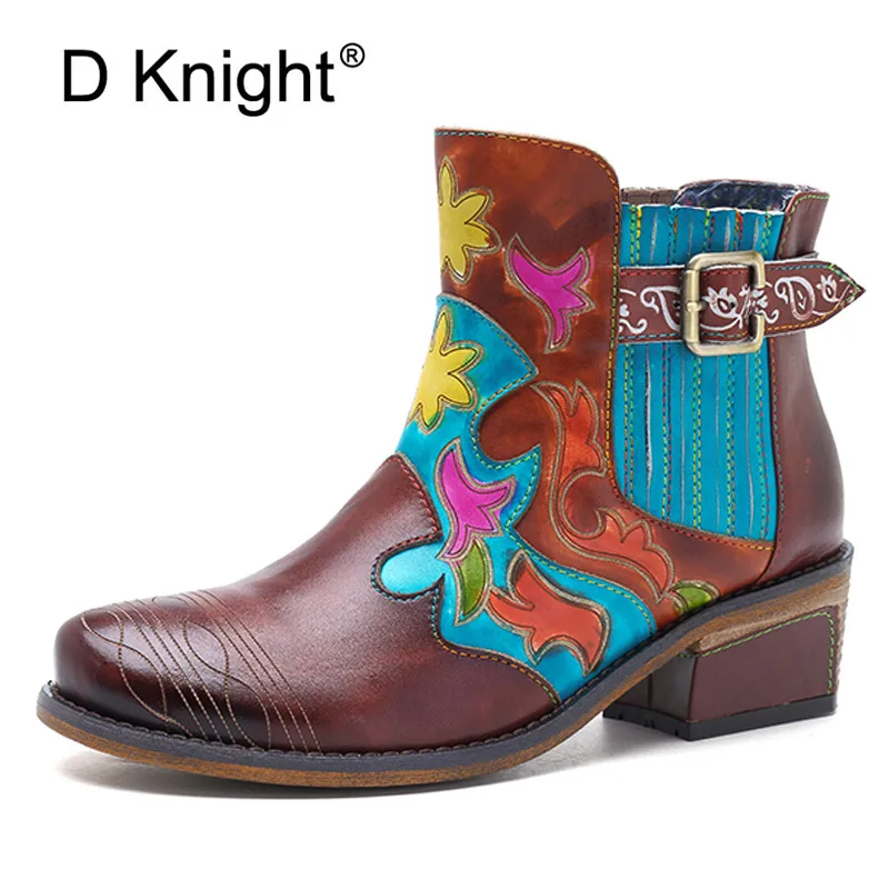 Женские ковбойские ботинки в стиле ретро, ботильоны из натуральной ...