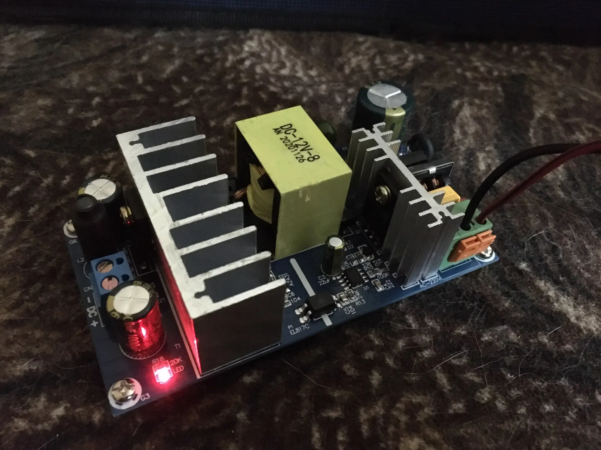 Швидка доставка. Упаковка хороша, нічого не пошкодилось. Блок живлення спаяний якісно. При навантаженні струмом 6А напруга просідає до 11,7V. Приблизно через 10 хвилин температура вихідного радіатора досягає 100°С. При максимальному струмі потрібно додаткове охолодження вентилятором.