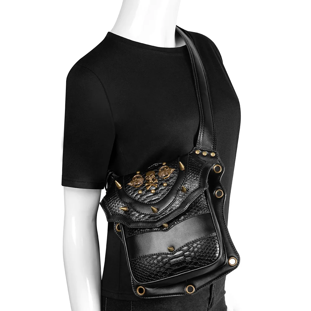 Сумки стимпанк Готическая сумка-мессенджер для женщин, винтажная модная поясная сумочка на плечо в стиле ретро, маленькая Байкерская сумка на ножки
