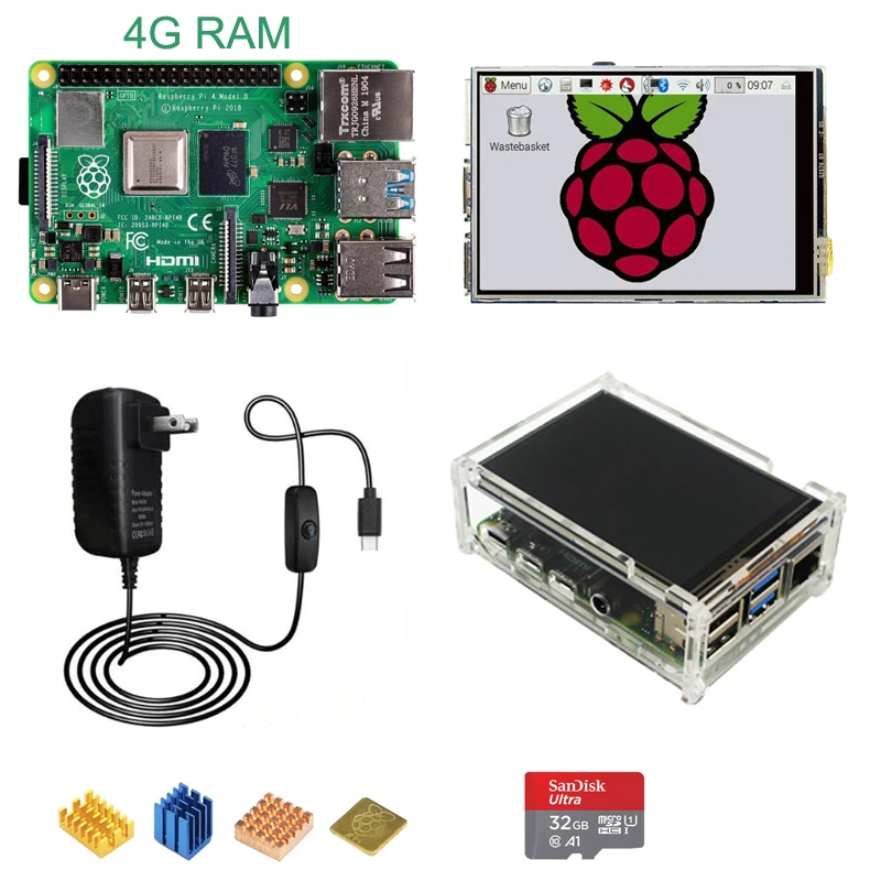 Raspberry Pi 4 Модель B 4G с 3,5 дюймов ЖК-дисплей Дисплей RPI4 акриловый чехол RPI 4B 5V 3A Мощность адаптер 32G SD карты Купер теплоотвод