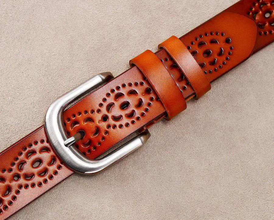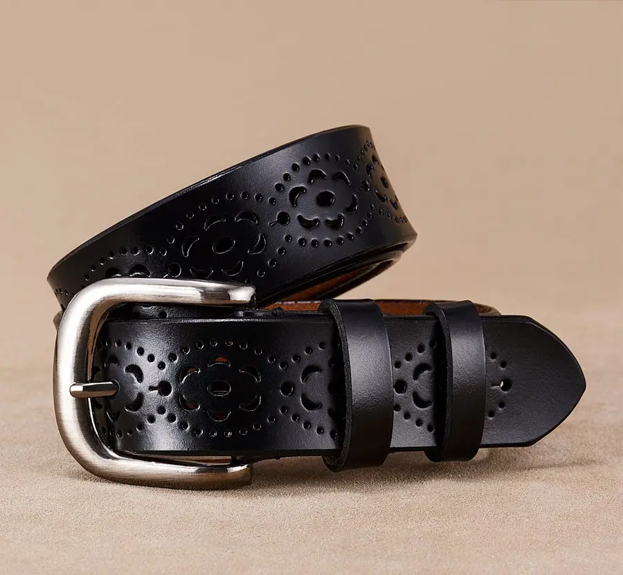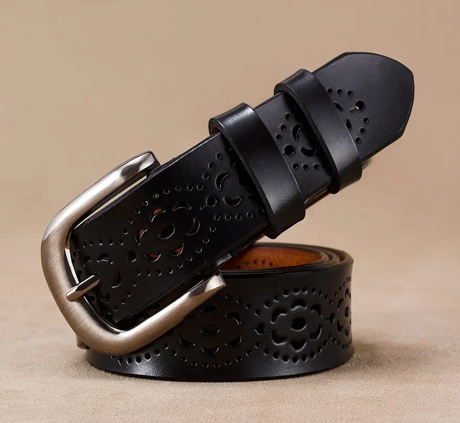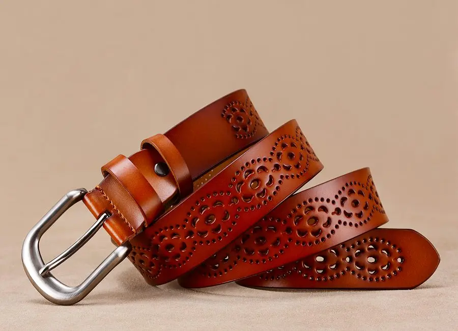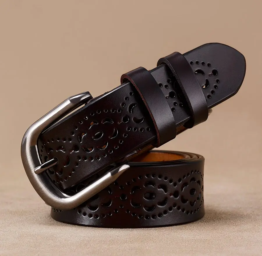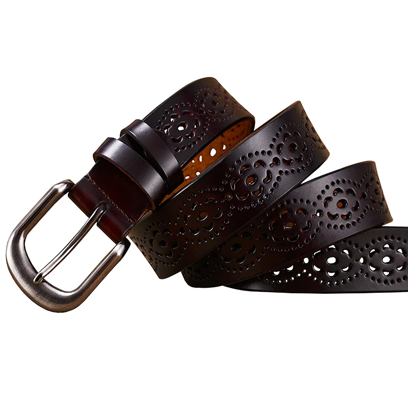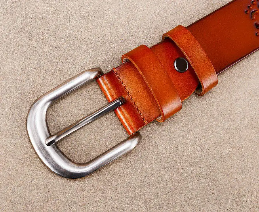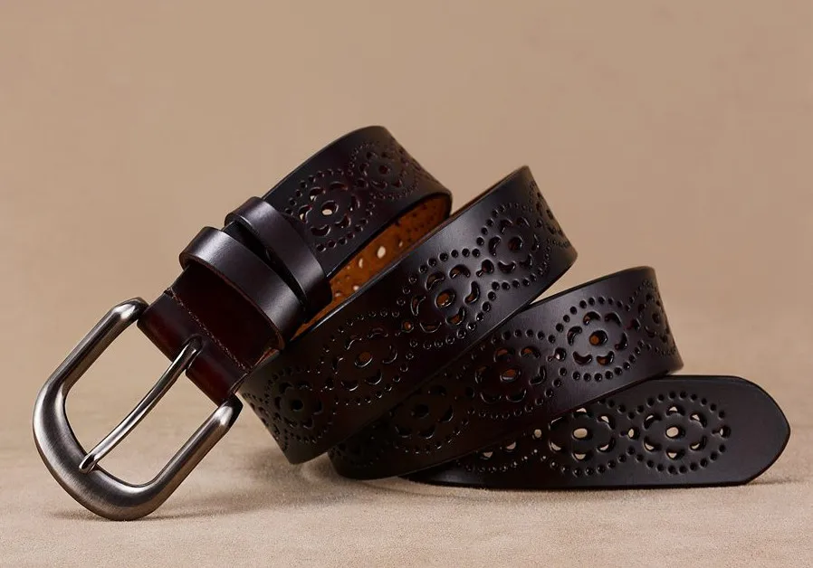 Женский ремень из натуральной кожи, классический ремень из воловьей кожи с цветочной пряжкой, ширина джинсов 3,2 см
