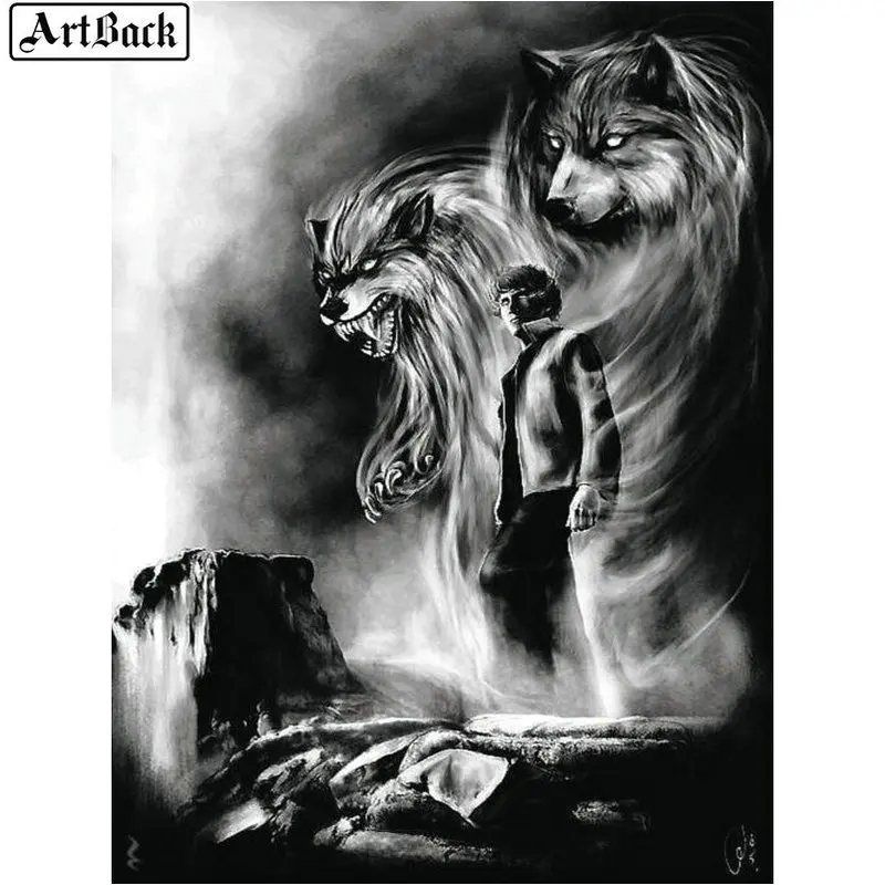 Алмазная 5d картина ARTBACK с волком, полная квадратная Бриллиантовая мозаика с волком, круглые 3d Алмазная вышивка