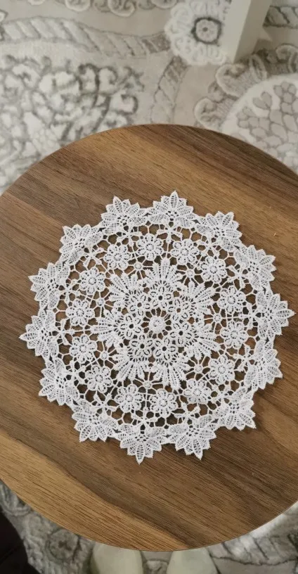 Красивые кружевные салфетки. Немного грубее, чем на фото, но за цену я не ожидал лучшего, чем это. Соотношение цены и качества очень правильное. Быстрая доставка и прием. Я рекомендую этого продавца, серьезно и надежно.