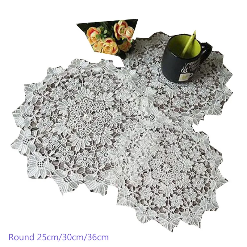 Элегантный белый кружевной круглый коврик с вышивкой для стола, Рождественская подушечка ткань, чашка для чая, салфетка под тарелку, кружка, Свадебная подставка под стакан для кухни