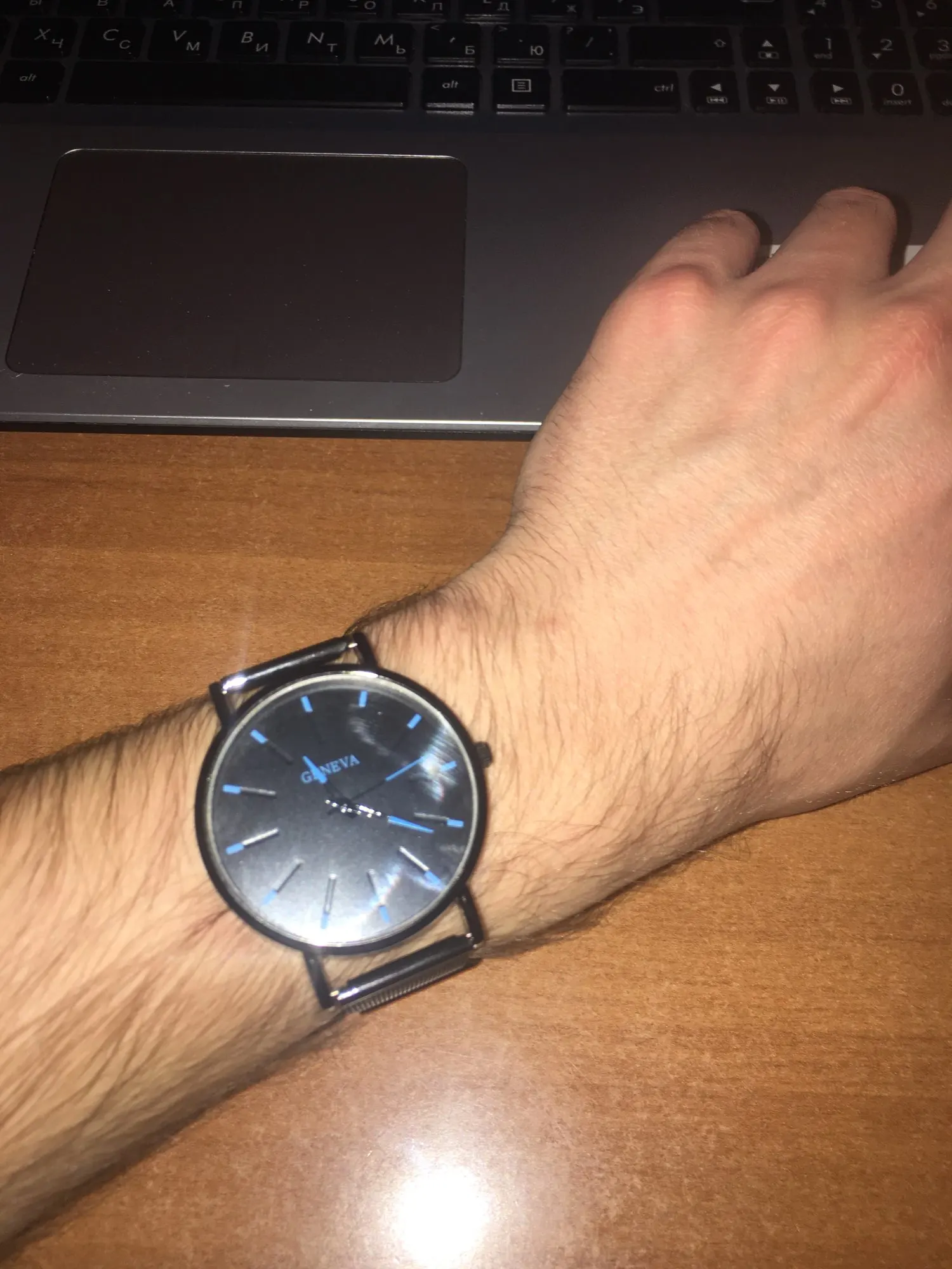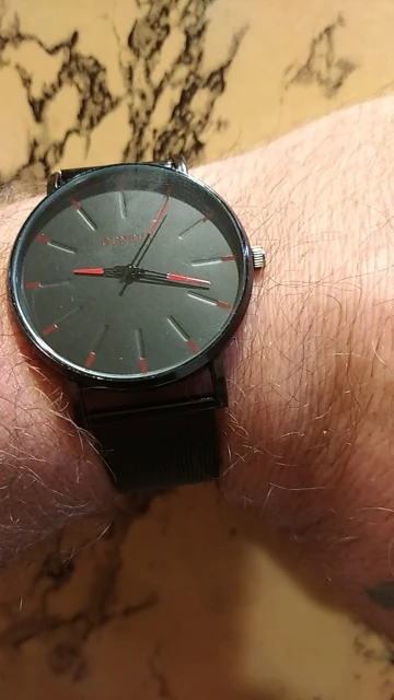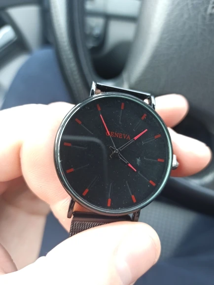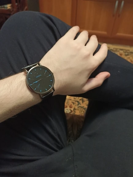 часы понравились, если бы не одно но .. ремешок буквально сразу же облез . практически не осталось напыления. выглядит уже не так как на картинке крч) ну да ладно стоимость оправдывает. идут и идут точно. п.с. Фото сделано через 2 минуты после первого надевания - как видите черный-черный ремешок (как в описании) УЖЕ пошел белыми проблесками отколупавшегося напыла краски))) но всё же порекомендую. возможно ремешок под кожу будет более долговечный.