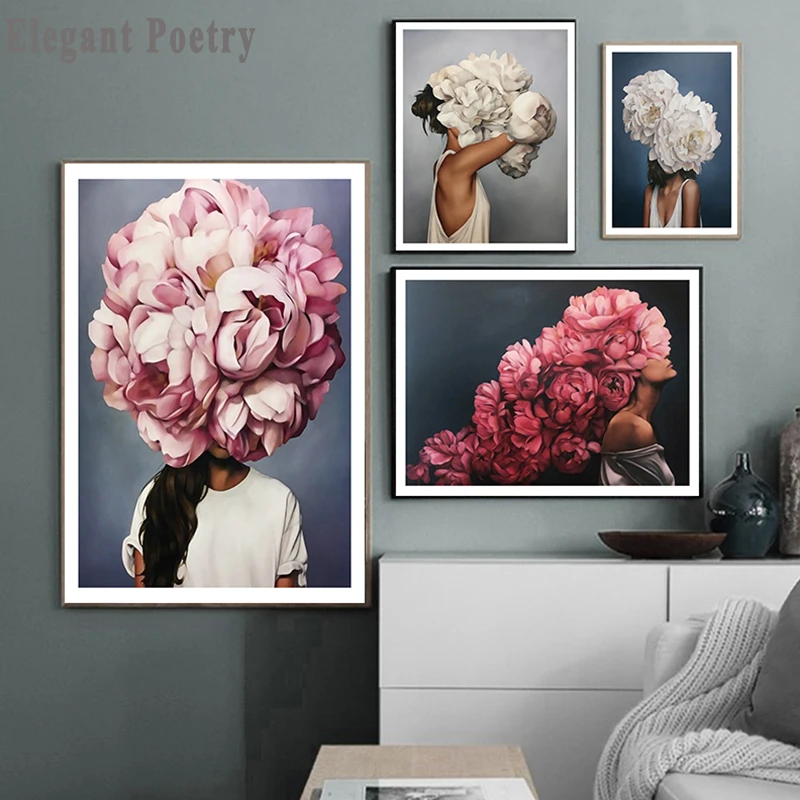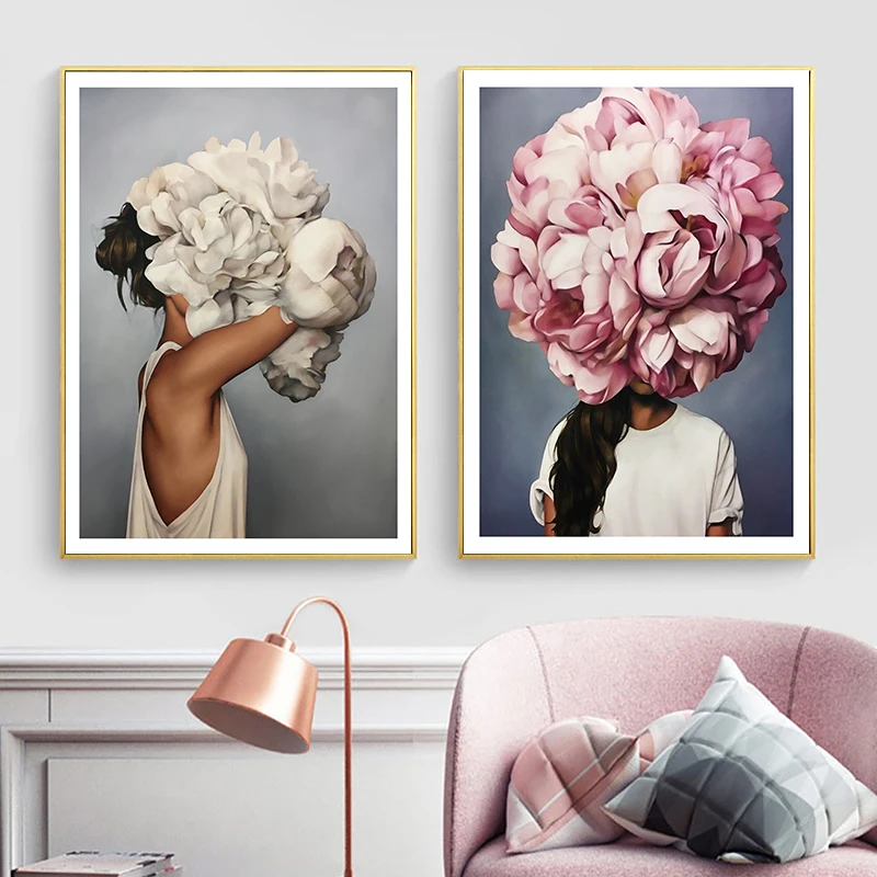 Скандинавский цветок, Женская Настенная картина, абстрактный постер...