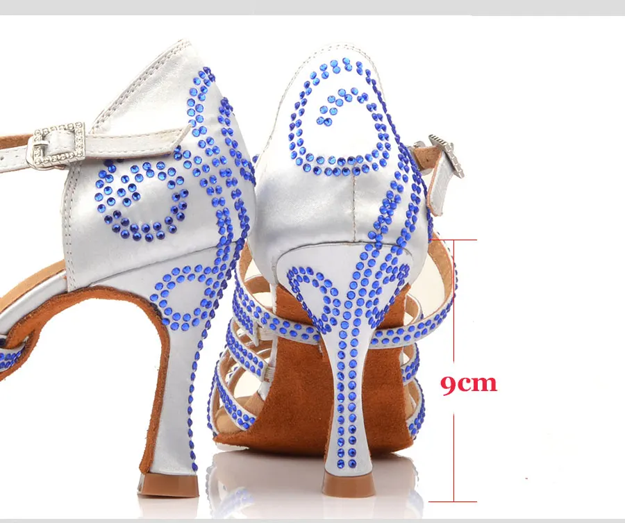 Женские туфли для латиноамериканских танцев, серебристые, синие