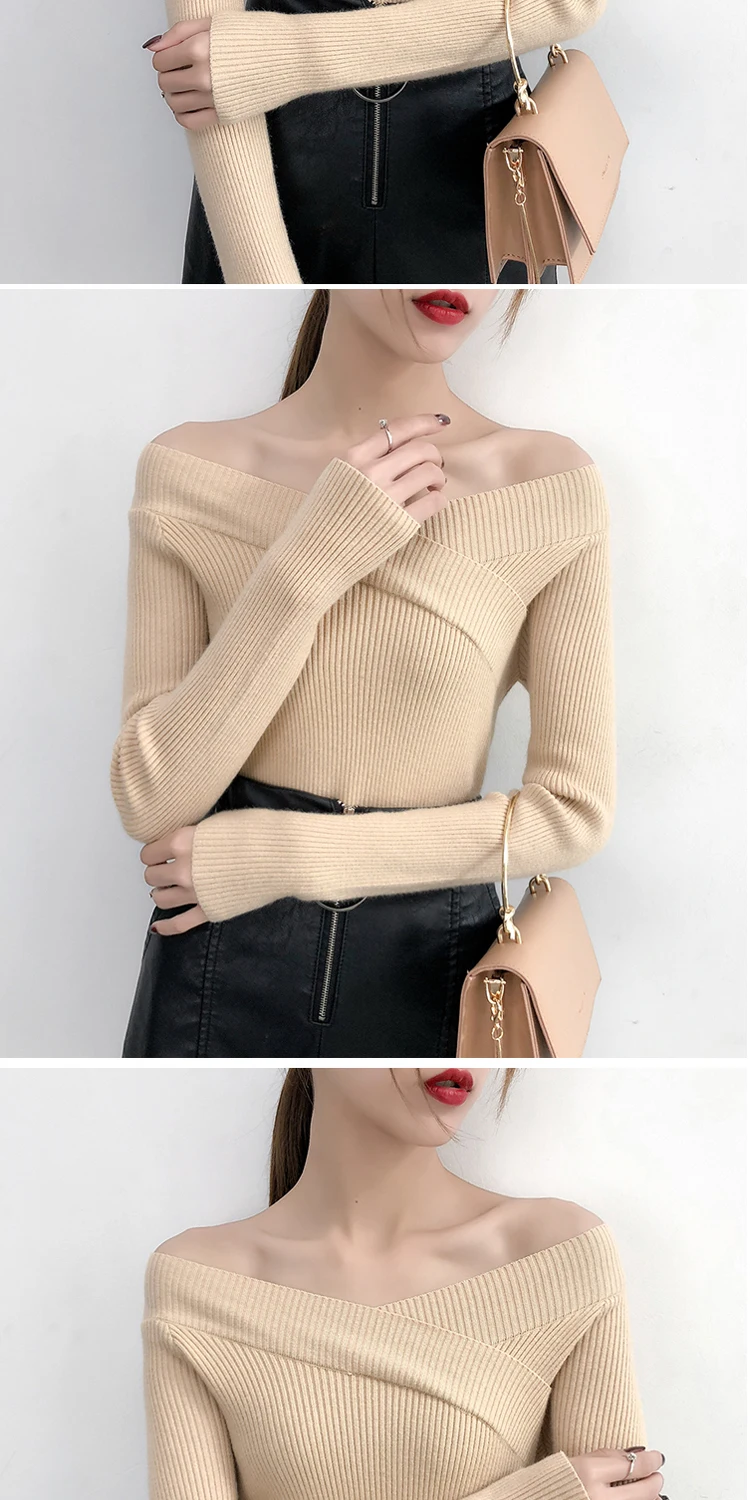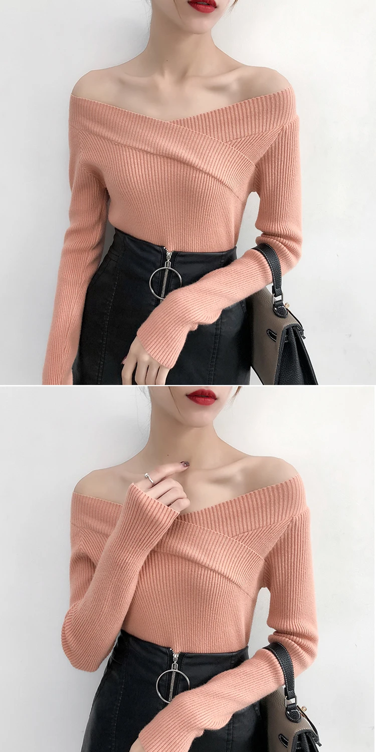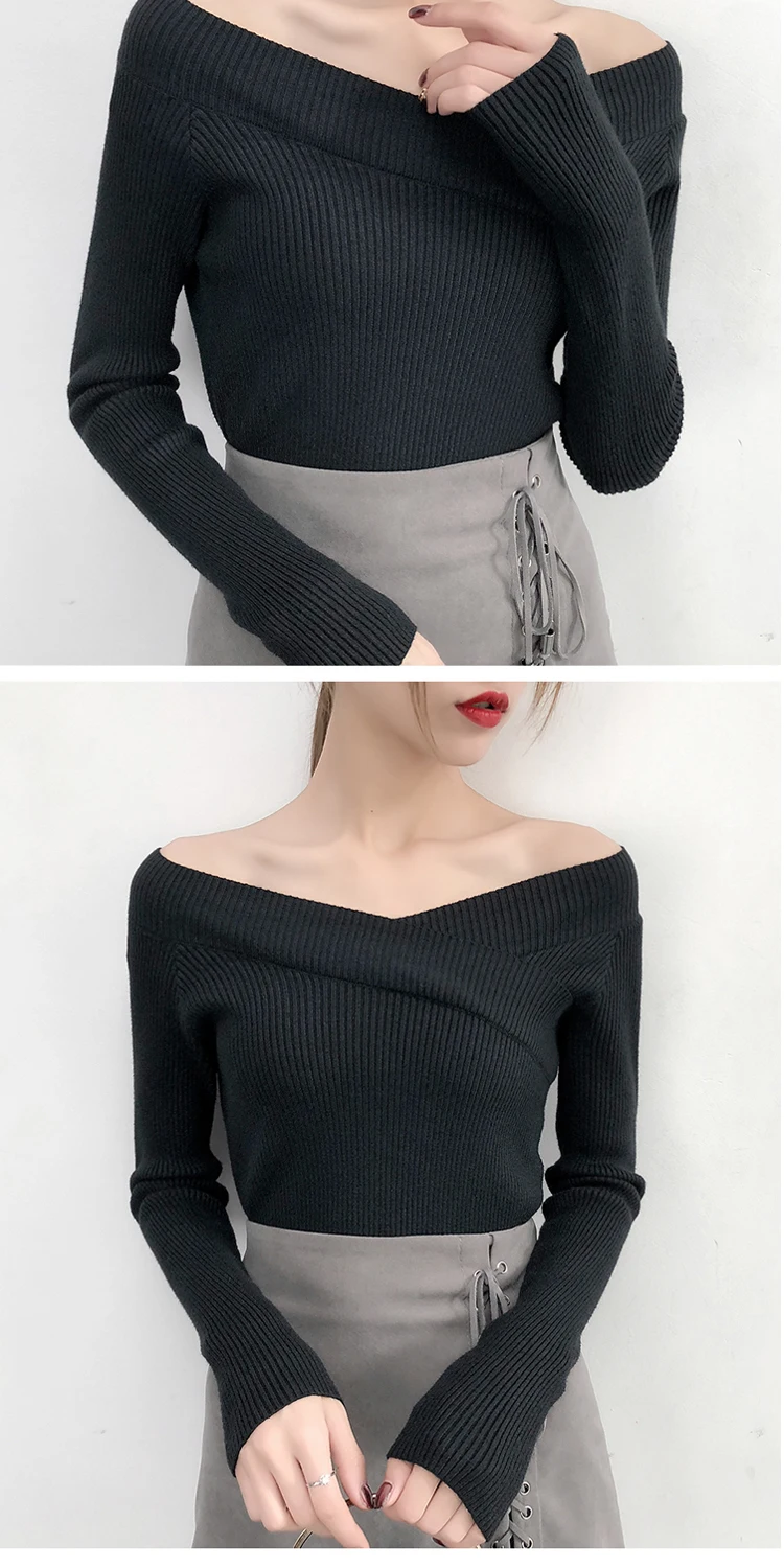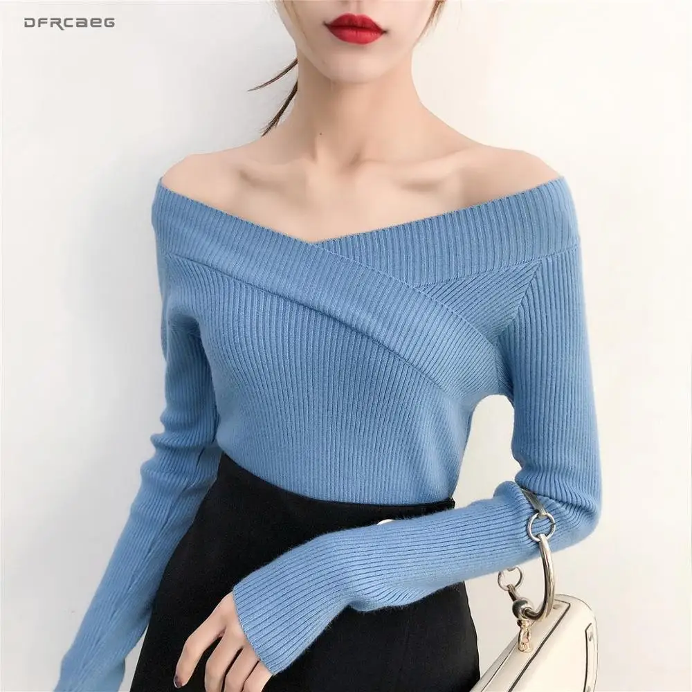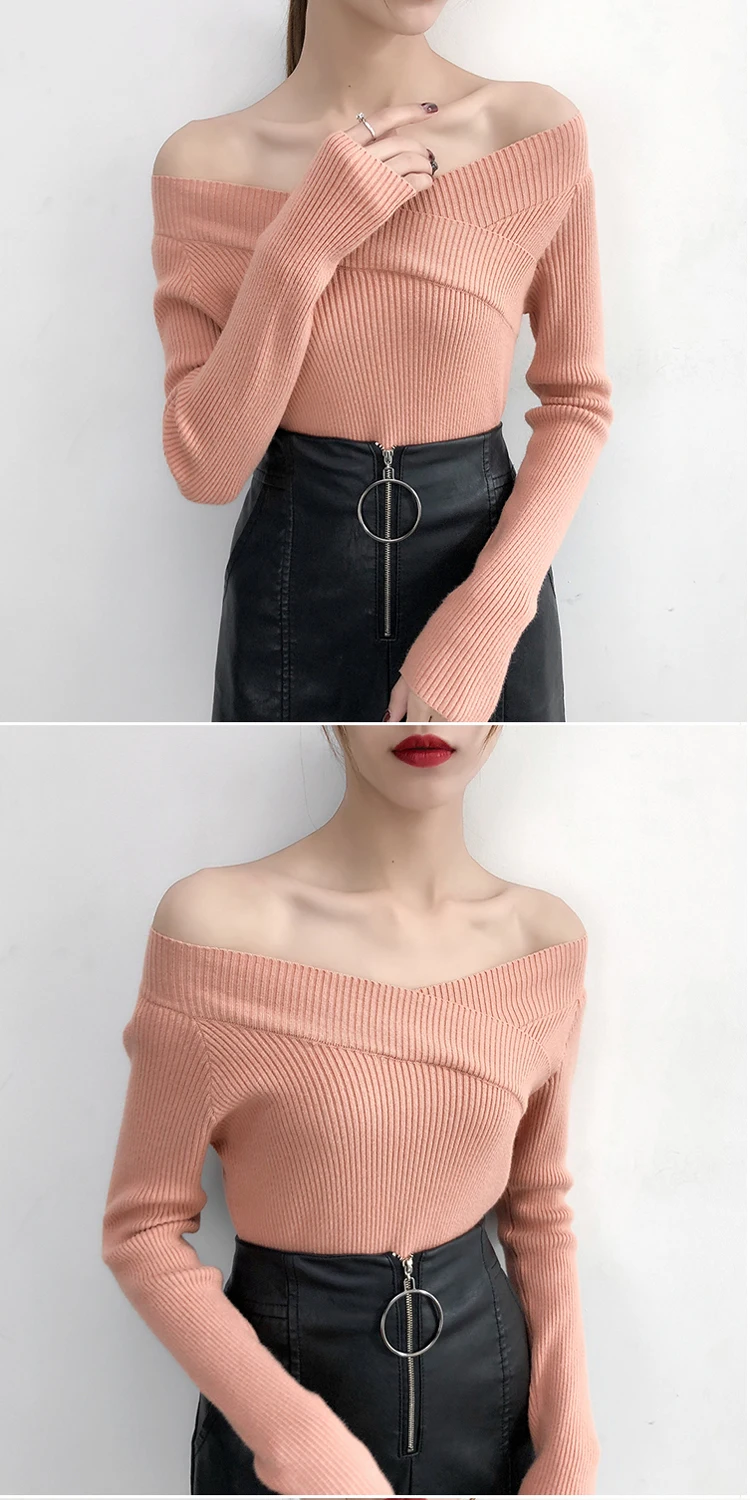 Новые поступления, сексуальные женские трикотажные пуловеры с открытыми плечами, свитеры, сезон осень-зима 2019, женская трикотажная одежда с длинным рукавом, женские топы