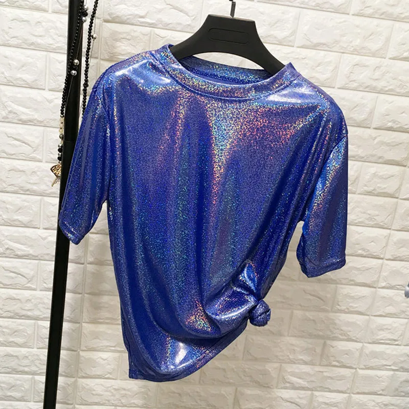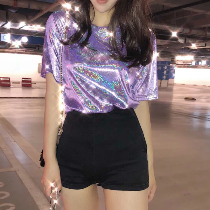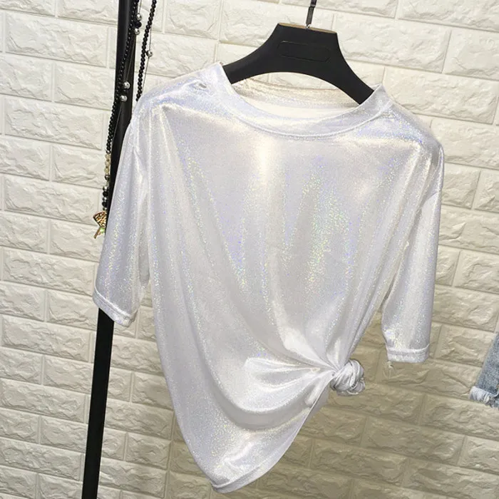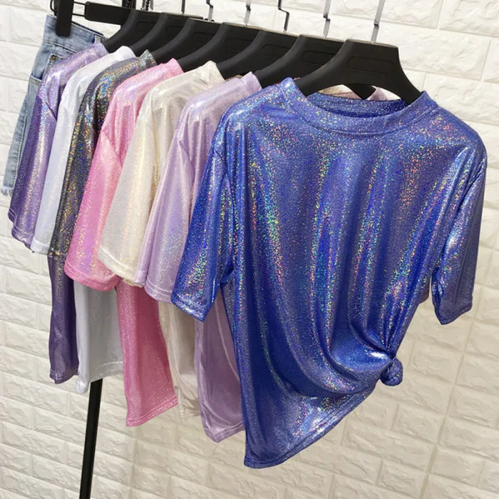 Женская Повседневная футболка, цветная Светоотражающая футболка с к...