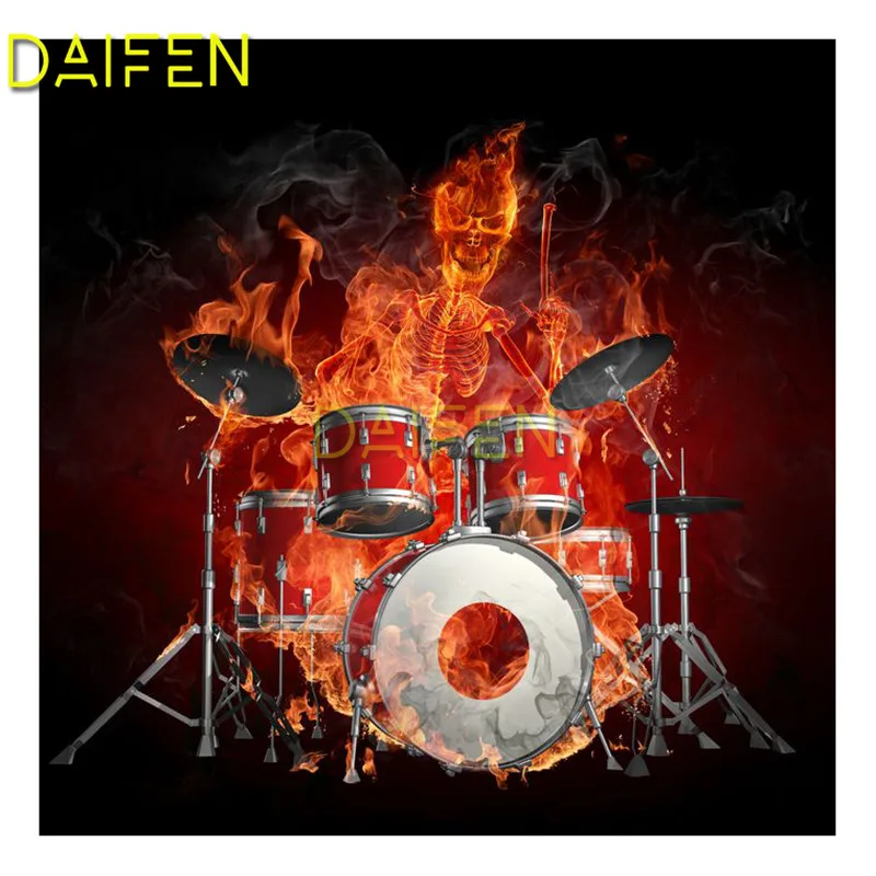 Полная квадратная Алмазная вышивка, огненный дым, Череп, барабан, Гонг-браслет, 5D сделай сам, алмазная живопись, вышивка крестиком, полная круглая Алмазная мозаика