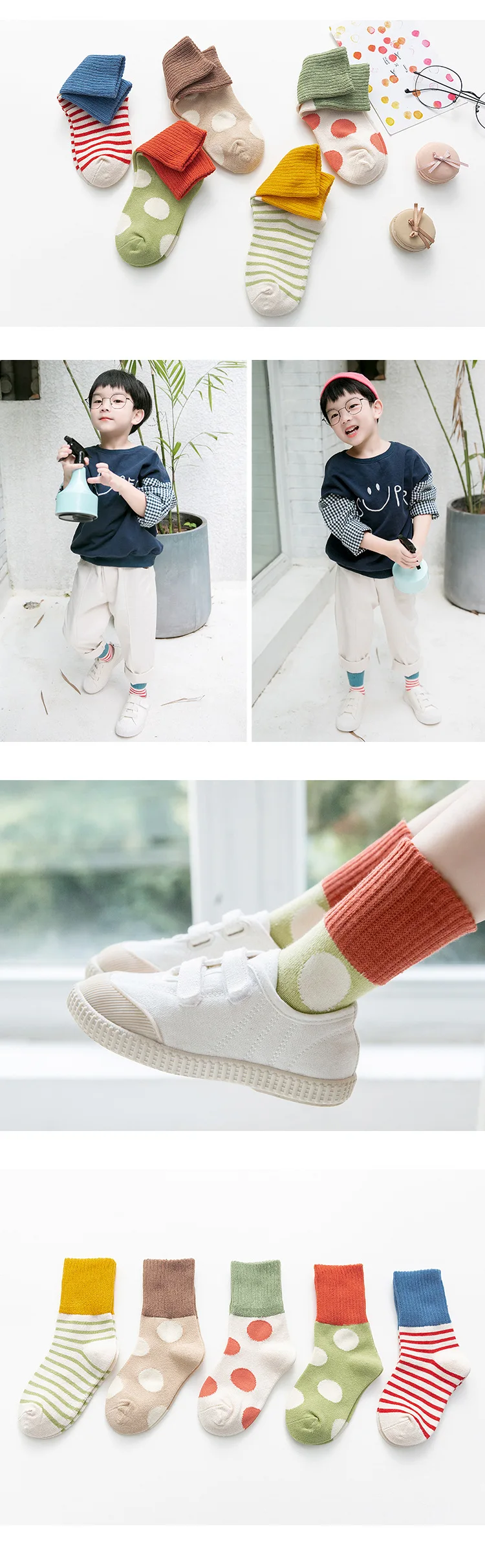 От 1 до 12 лет, 5 пар в упаковке, детские носки новые зимние носки в горизонтальную полоску в горошек носки принцессы