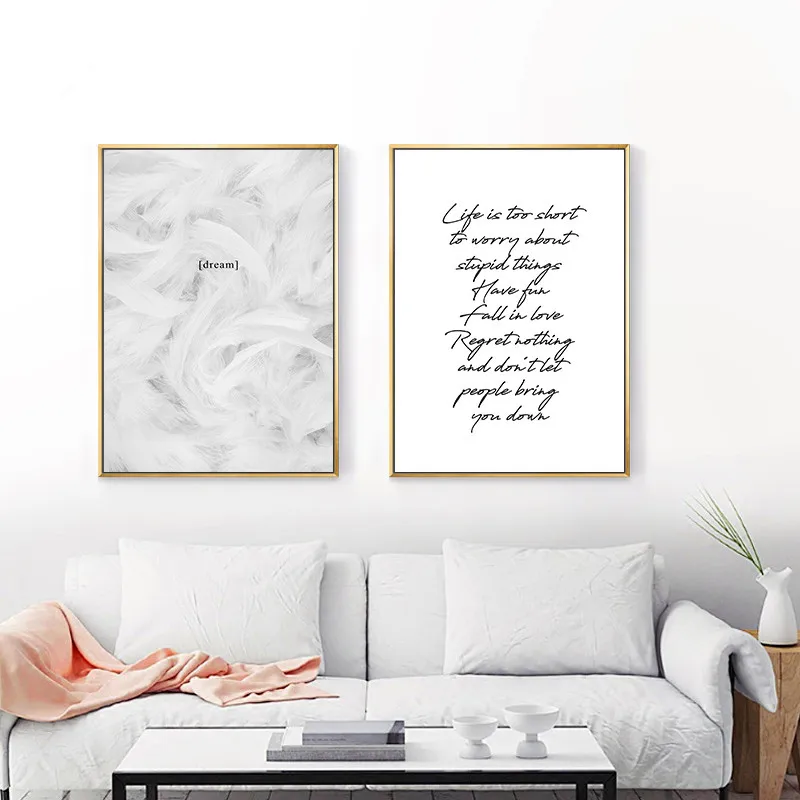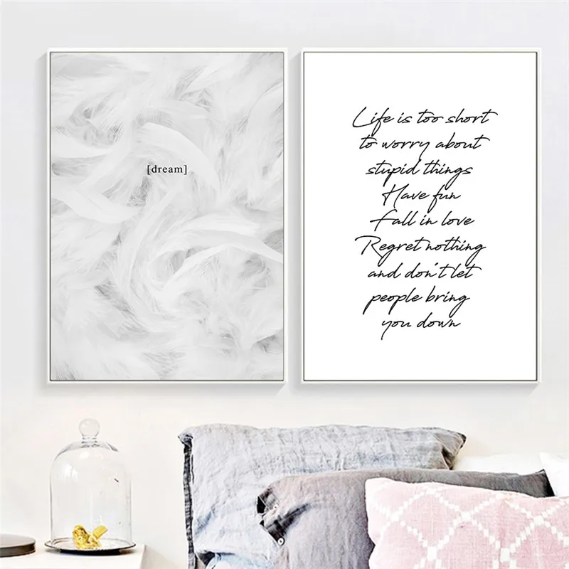 Черно-белые английские слова, цитата, Картина на холсте с принтом, белое перо, скандинавский постер, декор стен, HD2715