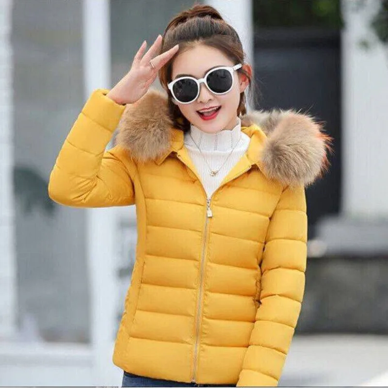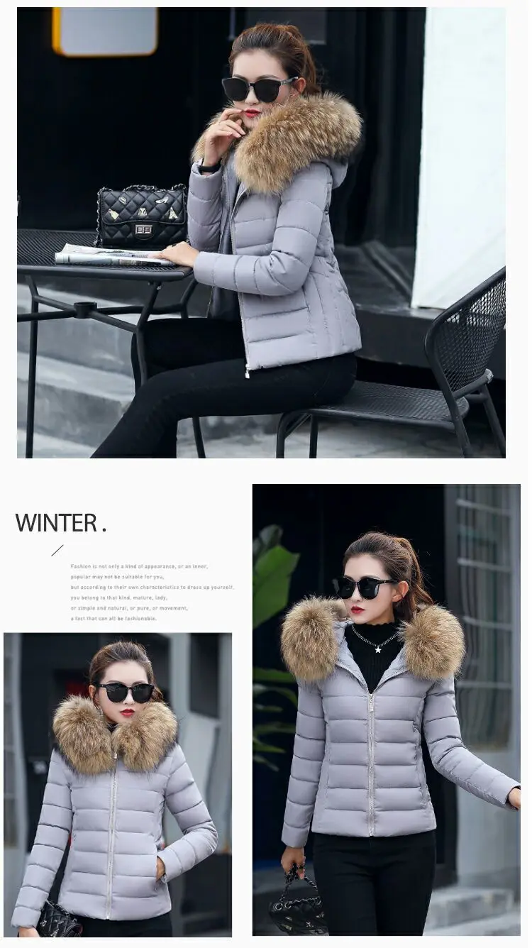 Куртка женская зимняя, с меховым воротником и капюшоном, приталенна...