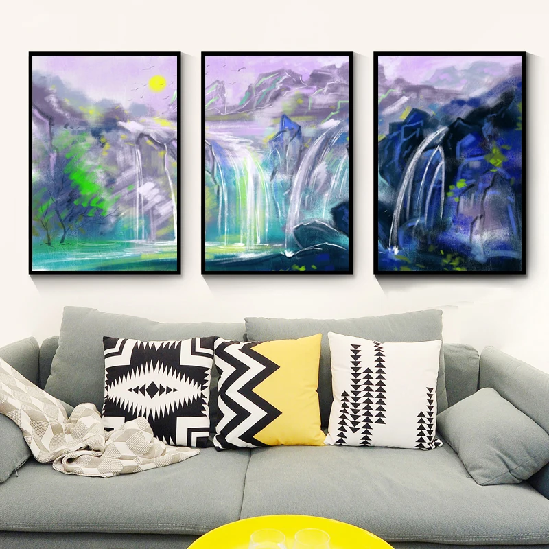 Название продукта:Художественный плакат для гостиной, настенная живопись, картина, абстрактный пейзаж, закат, водопад, настенная фотография, холст, печать