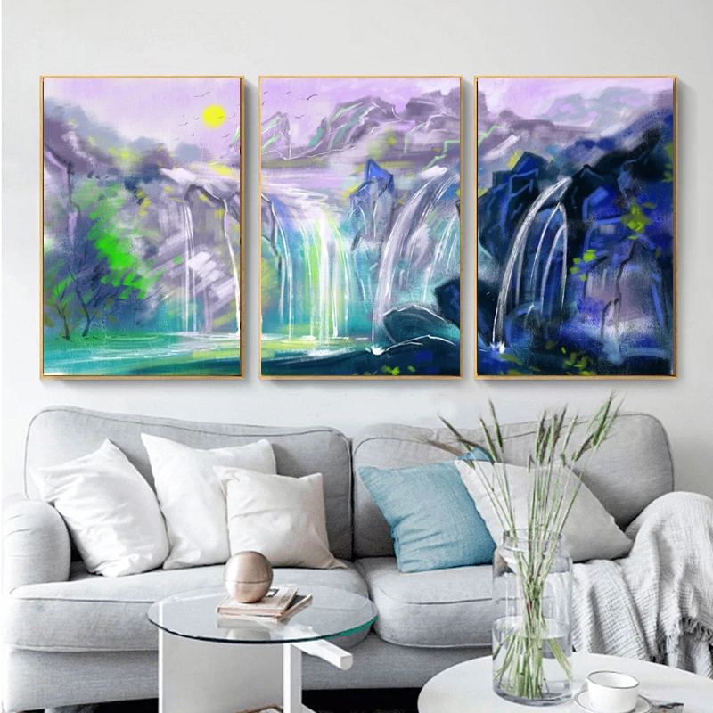 Настенная живопись для гостиной, абстрактный пейзаж, закат, водопад