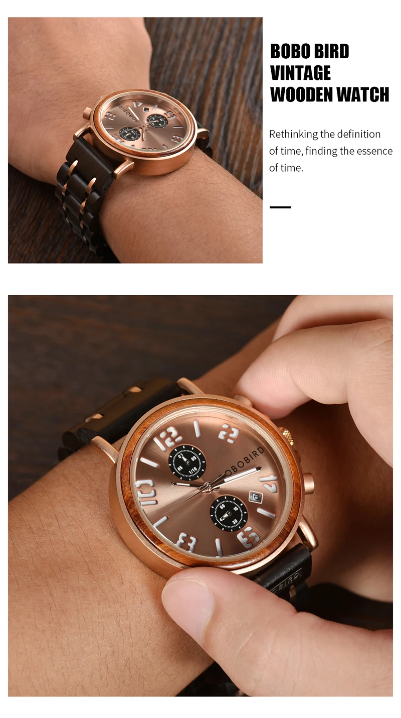 Многофункциональные деревянные часы BOBO BIRD, мужские водонепрониц...