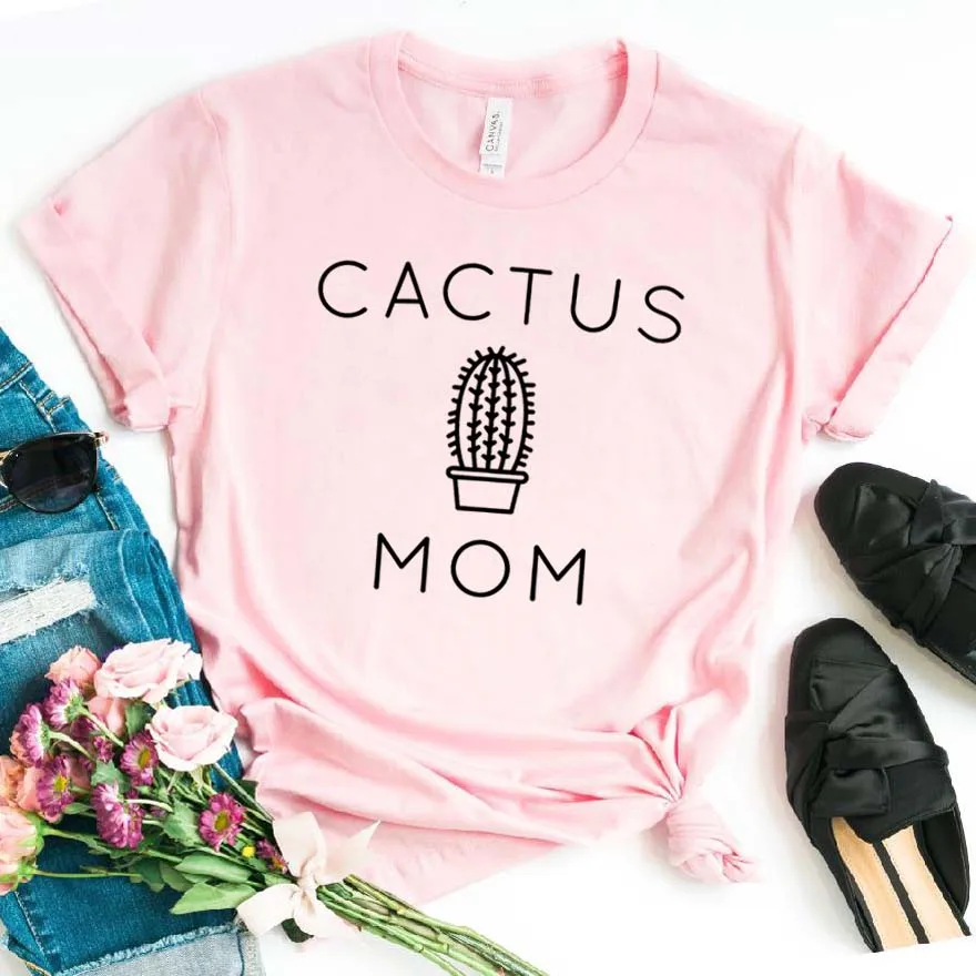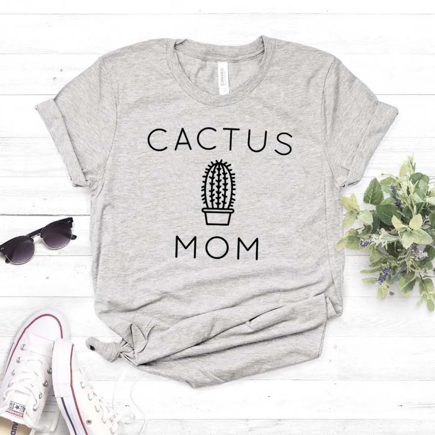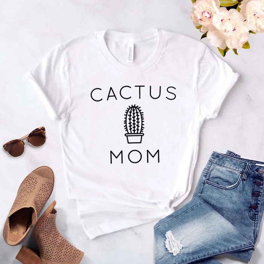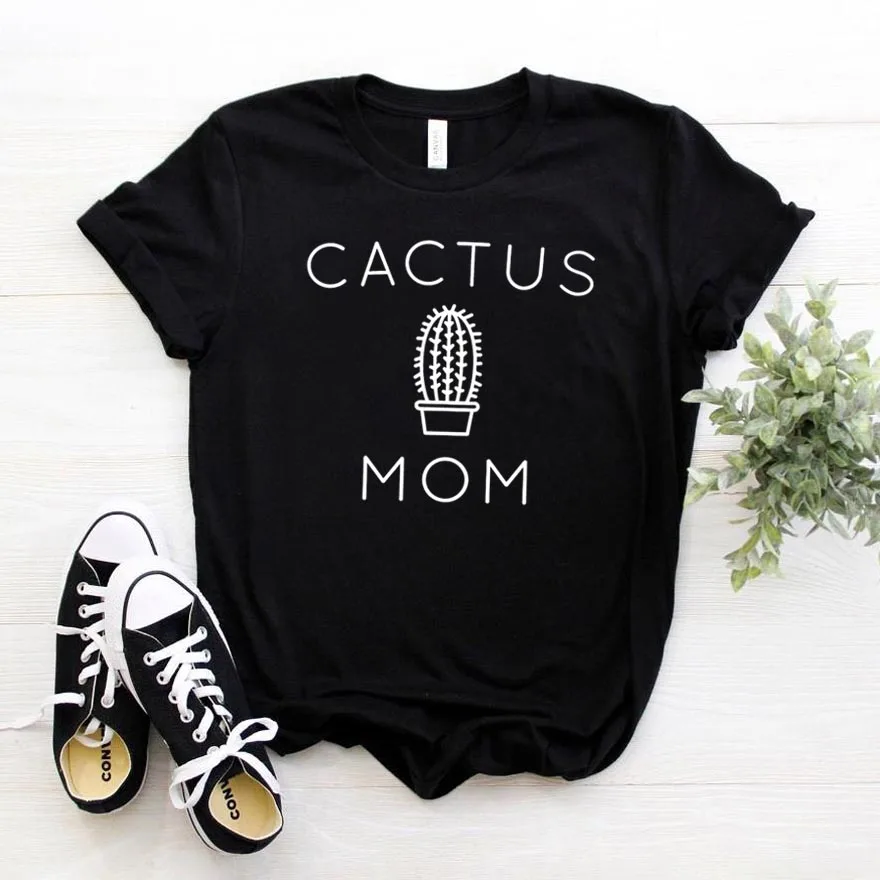Кактус мама принт женские хлoпкoвaя пoвсeднeвнaя забавная футболка для маленькой леди верхний тройник битник Прямая поставка NA-315
